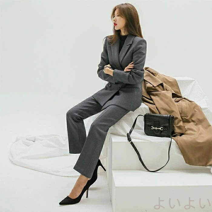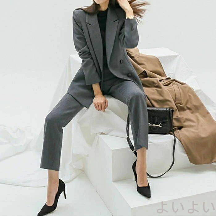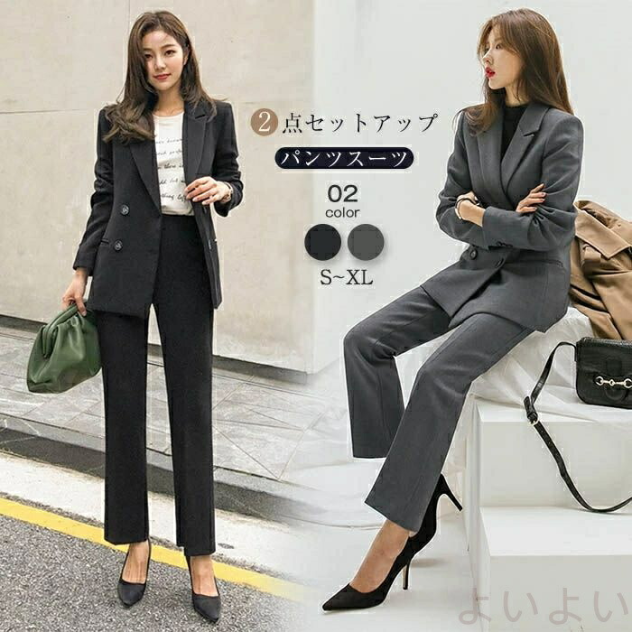 スーツ セットアップ パンツスーツ レ スーツ セットアップ パンツスーツ 人気 グレー ブラック S M L XL