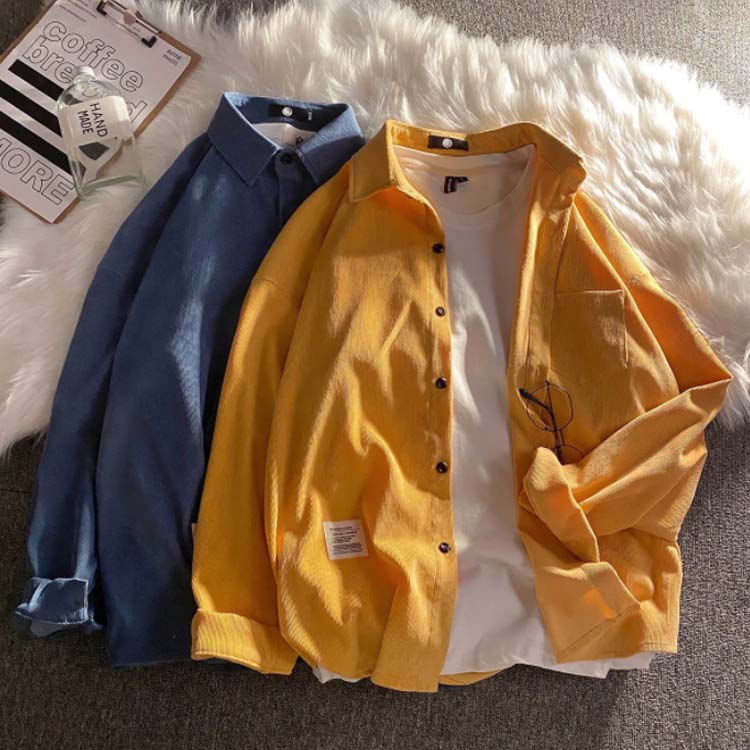 秋冬 メンズ 全6色 コーデュロイシャ トップス カジュアルシャツ 新作 ブラック ホワイト イエロー ピンク ブラウン ブルー M L XL 2XL