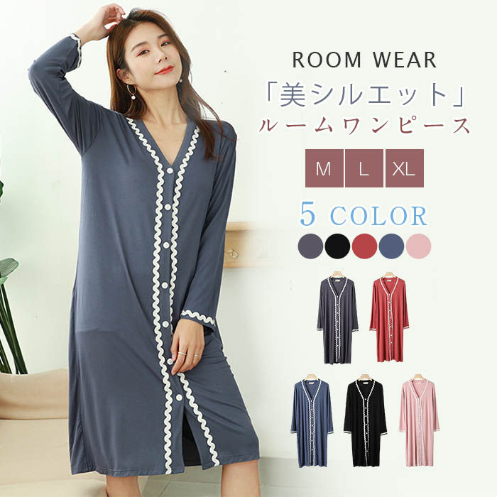 ルームウェア パジャマ ルームワンピー グレー ブラック レッド ブルー ピンク M L XL