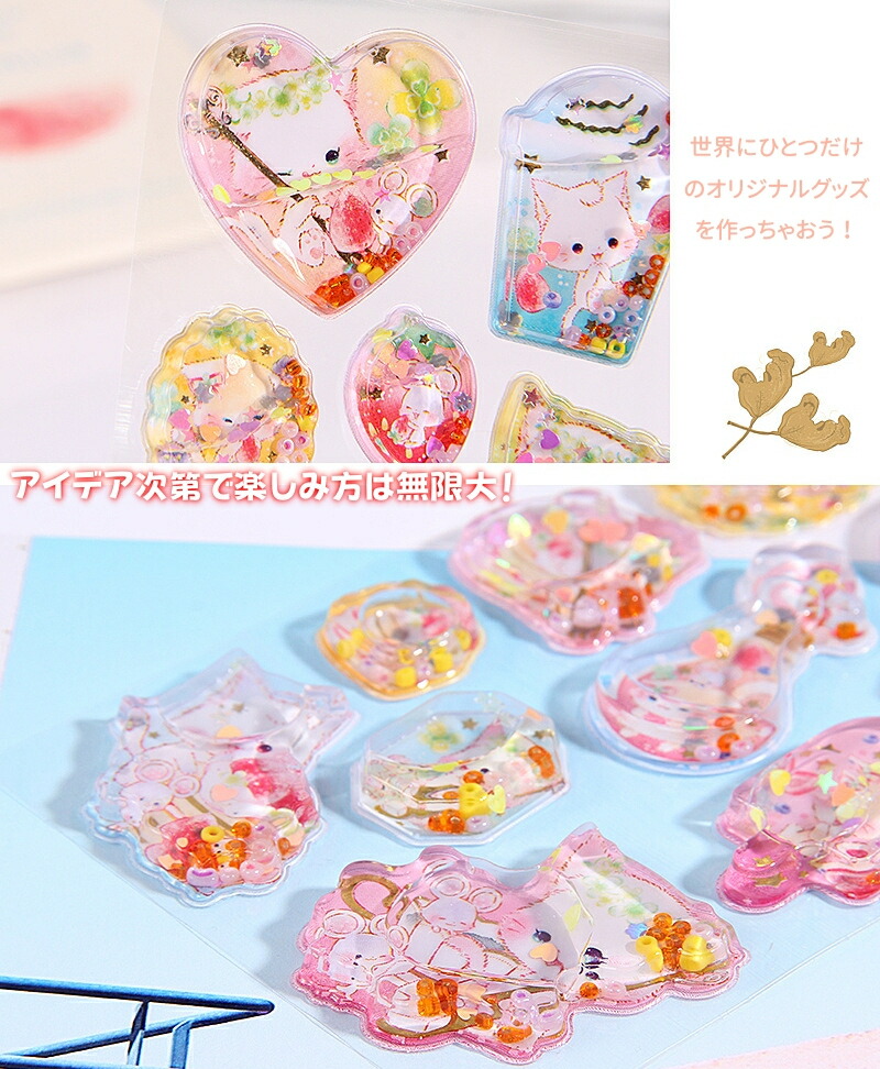 ウォーターシール ぷっくりシール ぷくぷくシール ドロップシール キャラクター 3D 立体シール 平成レトロ ドロップ ぷっくり つやつや キラキラ かわいい 動物 女の子 平成女子 シール ぷくぷく