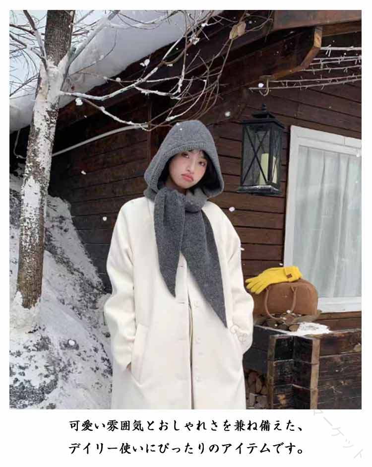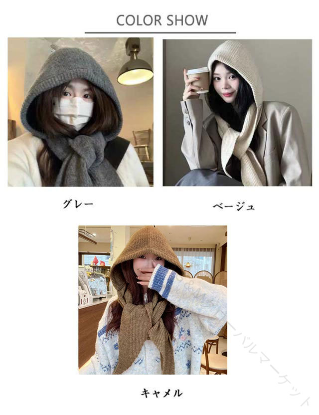 フード マフラー ニット フードマフラ マフラー スカーフ レディースマフラー ストール 人気 グレー ベージュ キャメル ブラック レッド