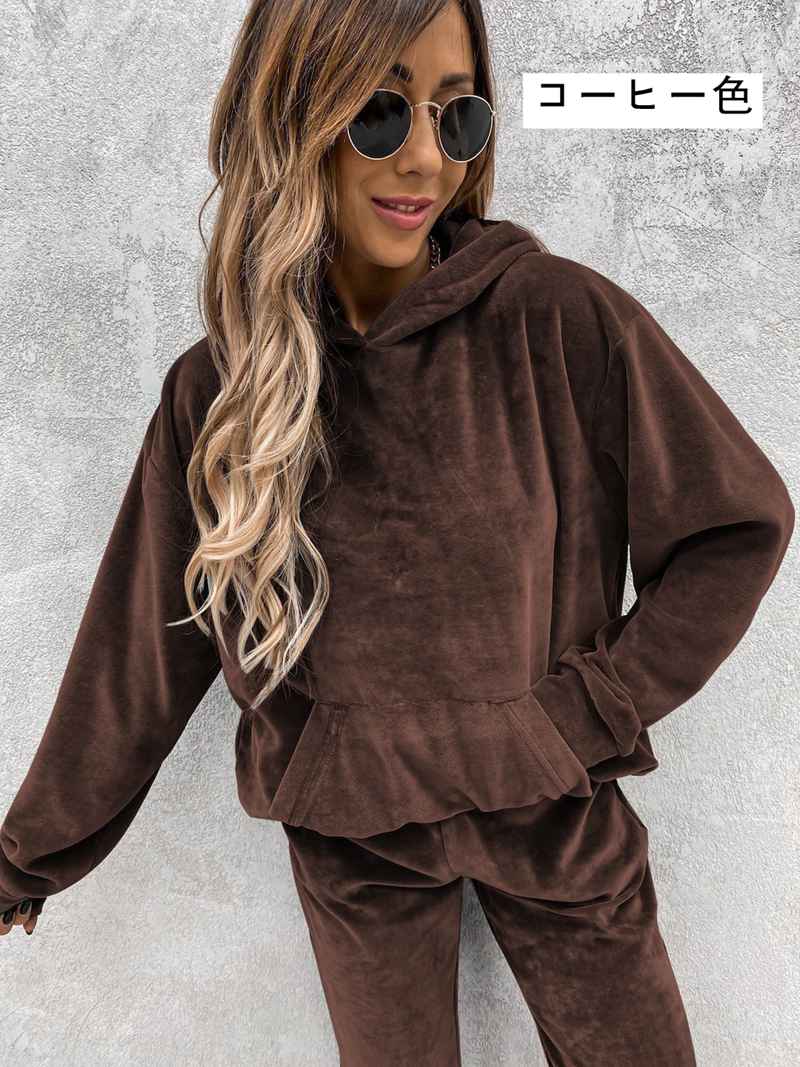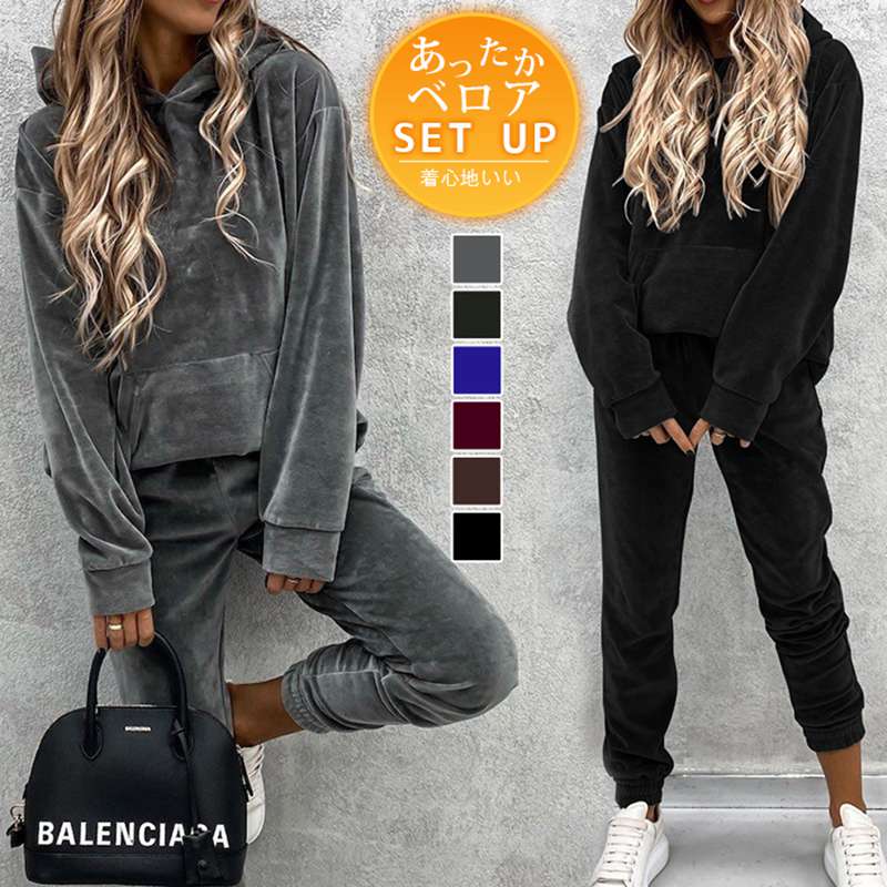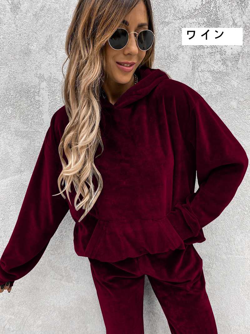 ベロア セットアップ ルームウェア レ レディースファッション 特集 グレー ブラック ワイン コーヒー色 ブルー オリーブ S M L XL