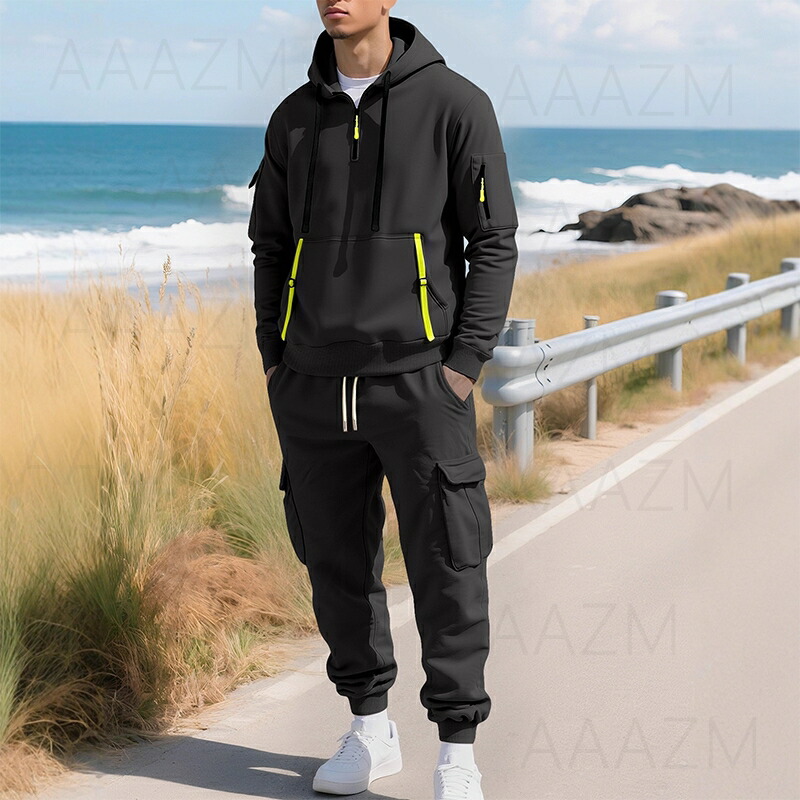 優れた機能性デザイン:フード付きパーカーとストレッチ性のあるスウェットパンツの組み合わせで、ジム、ジョギング、トレーニングなどあらゆるアクティブシーンにぴったりのジャージセット。