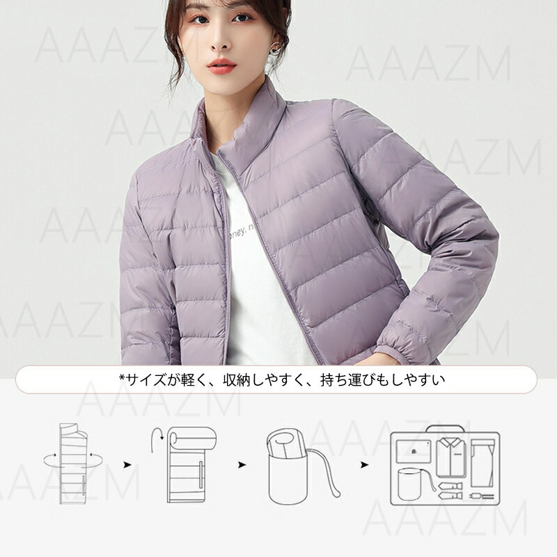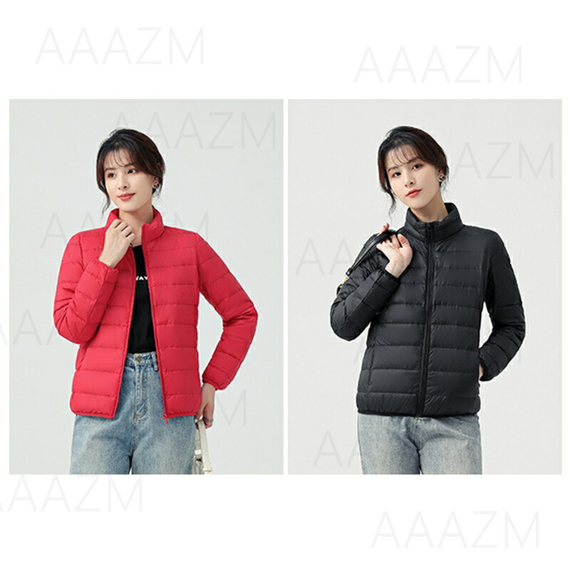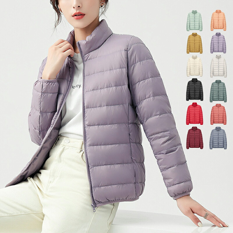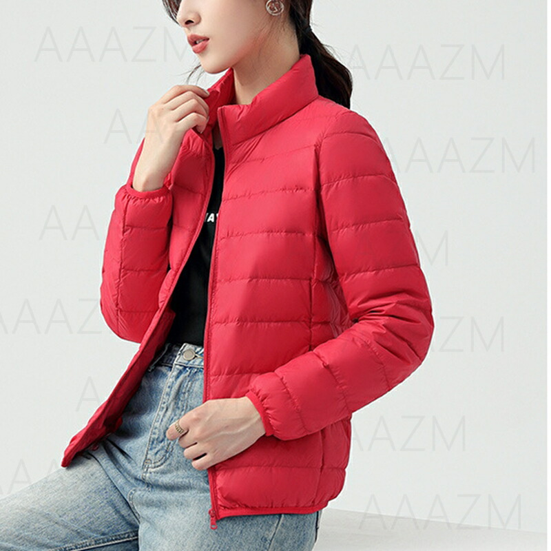 ダウンケット レディース 詰襟 おしゃれ ダウンジャケット タイト ショート丈 ファッション 無地 赤 ピンク パープル 白 アウター 軽量 薄手 暖かい 90%ダウン 女子 女性 20代 冬コート