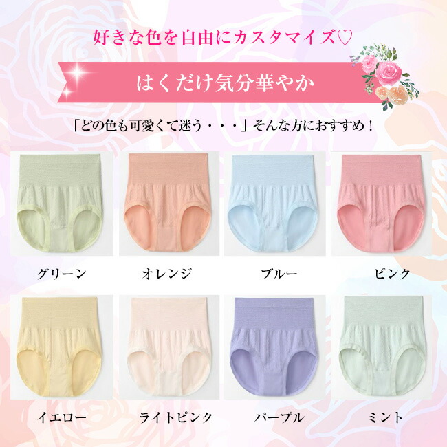 5枚セット ハイウエストショーツ レデ インナー 下着 ナイトウエア 人気 M (40-60kgにおすすめ) L (60-75kgにおすすめ) グリーン オレンジ ブルー ピンク イエロー ライトピンク パープル ミント