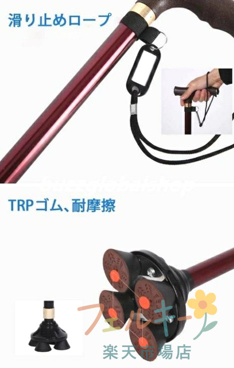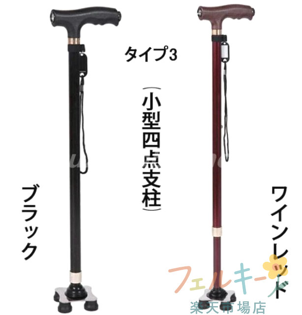 介護用品 杖 ステッキ 伸縮型 軽量 ブラック ワインレッド タイプ1 タイプ2 タイプ3 タイプ4