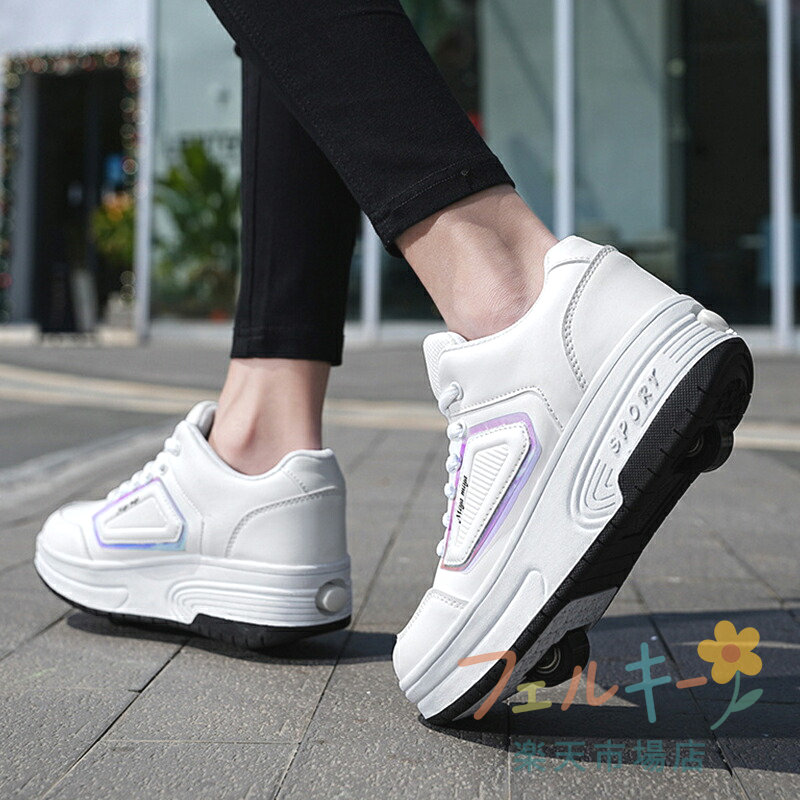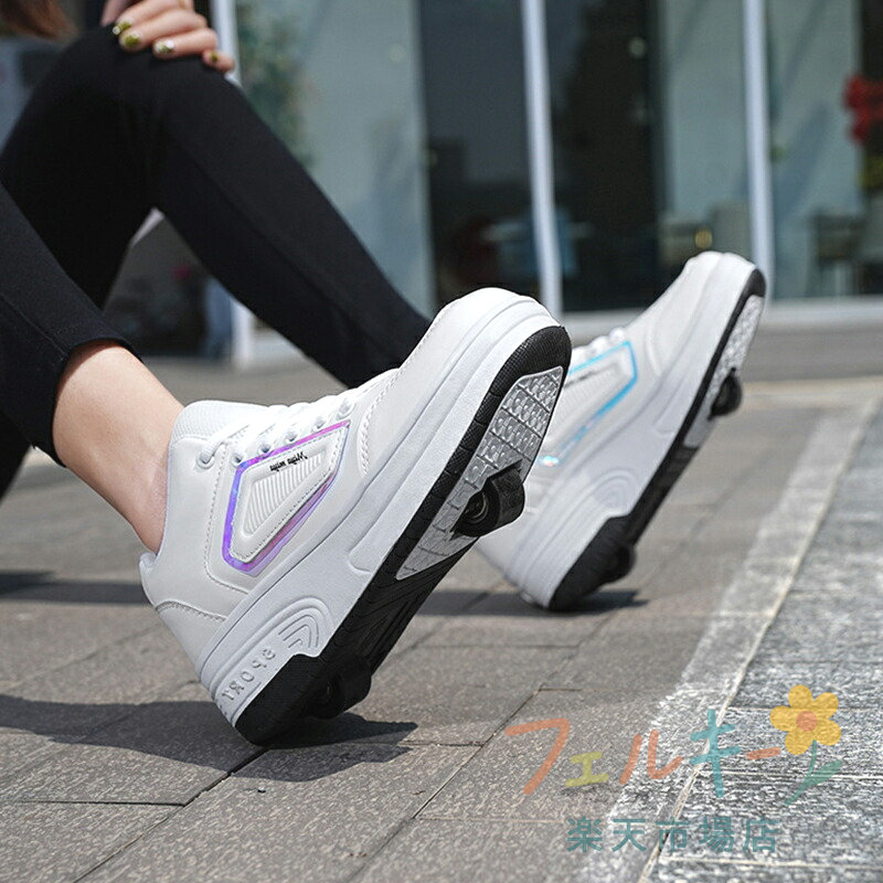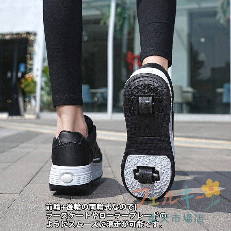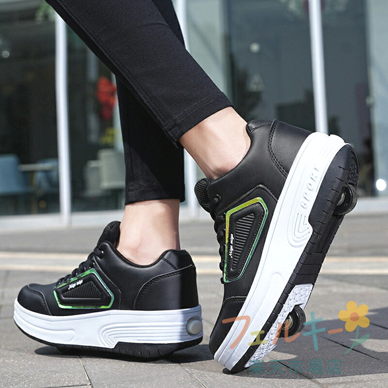 ローラーシューズ キッズ 大人 2輪 靴 大人気! ブラック ホワイト 22.0cm 22.5cm 23.0cm 23.5cm 24.0cm 24.5cm 25.0cm 25.5cm 26.0cm
