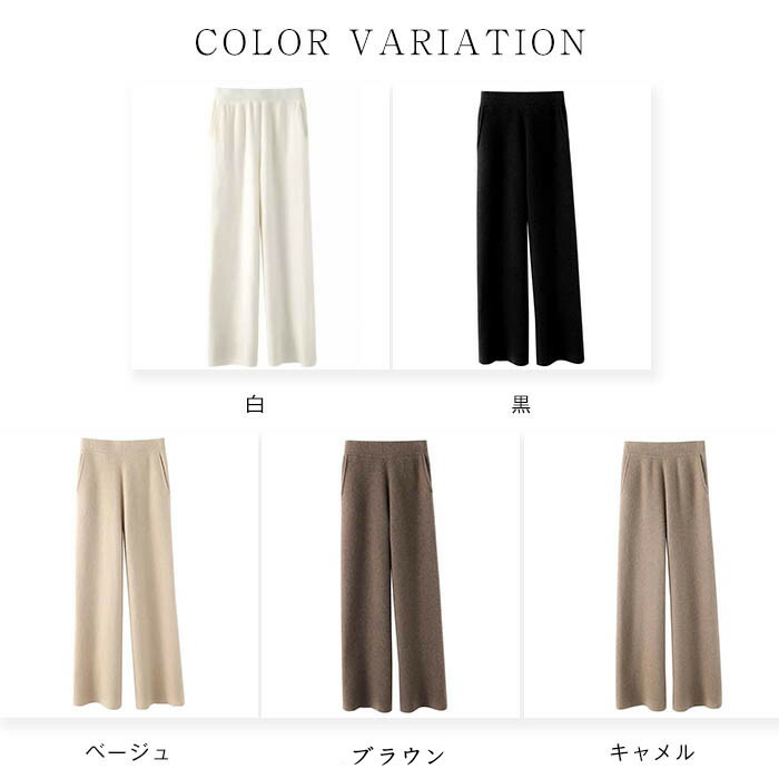 ニット ワイドパンツ レディース ニッ ボトムス パンツ 続々登場 白 黒 ベージュ ブラウン キャメル S M L XL