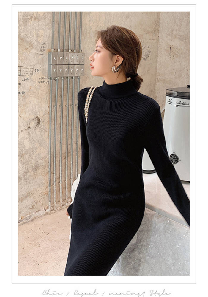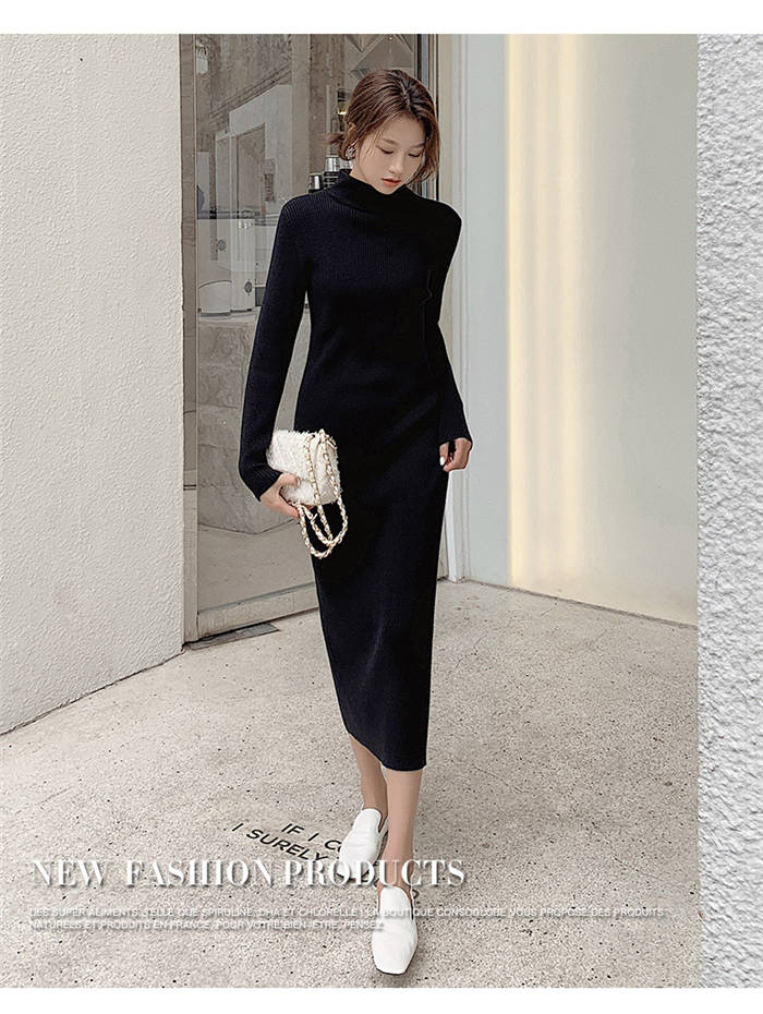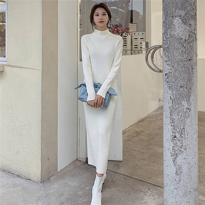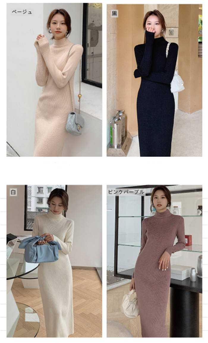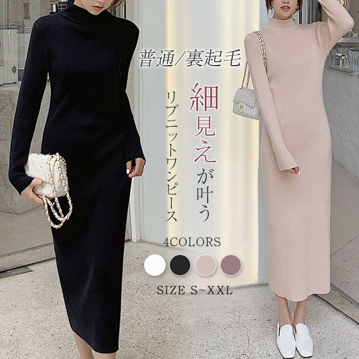 ニットワンピース 冬 裏起毛 レディー ワンピース 続々登場 黒 白 ベージュ ピンクパープル S M L XL XXL
