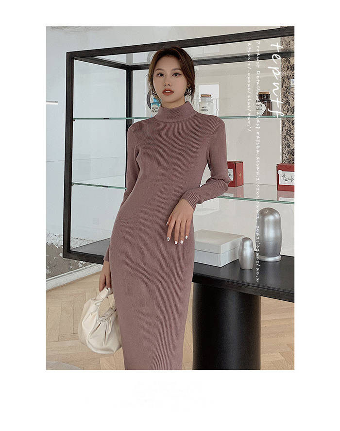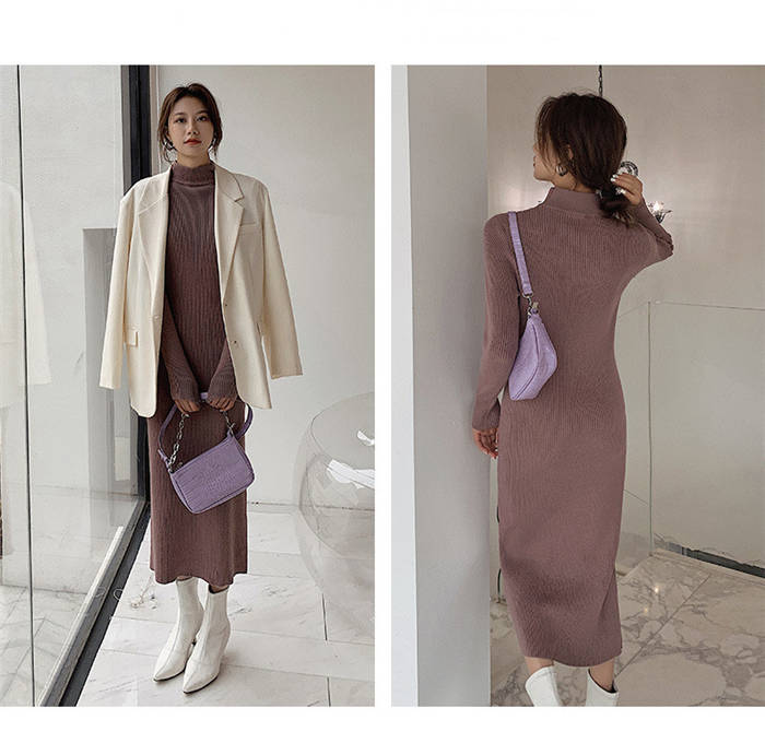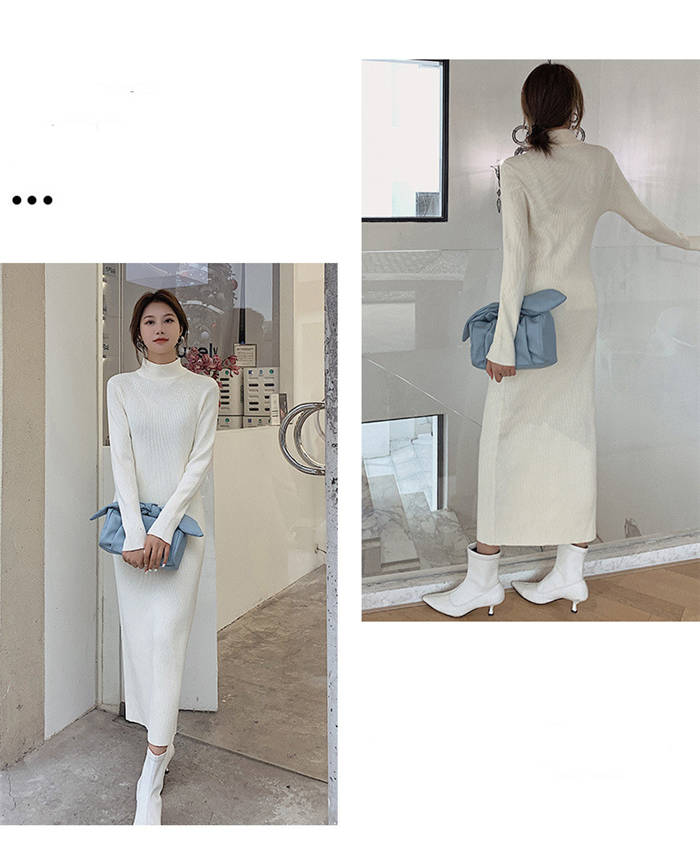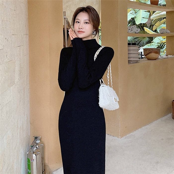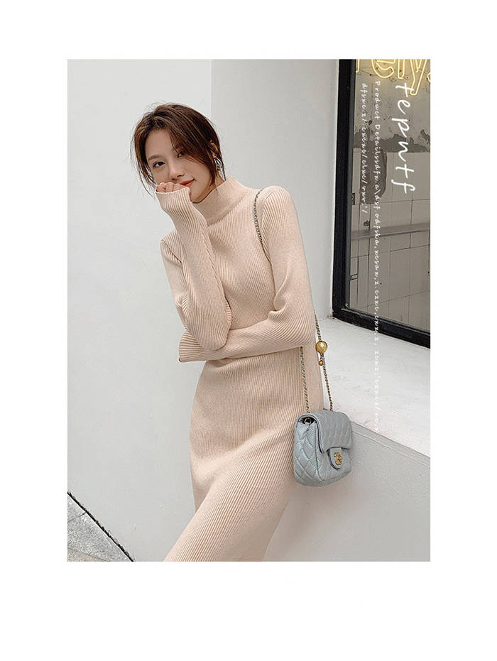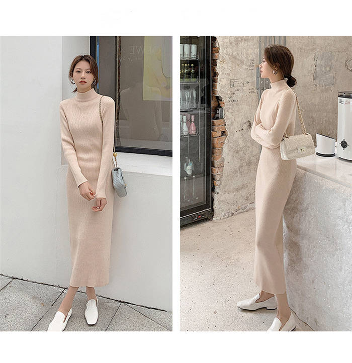 ニットワンピース 冬 裏起毛 レディー ワンピース 続々登場 黒 白 ベージュ ピンクパープル S M L XL XXL