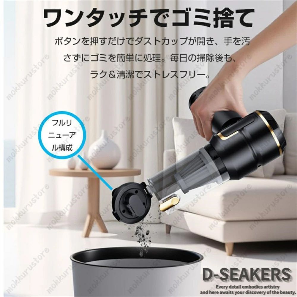 ハンディクリーナー コードレス 掃除機 ブラック シルバー 標準モデル 進化版・ワンタッチゴ三捨て