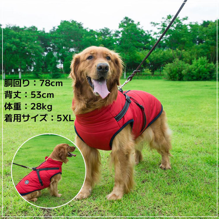 冬用防寒服 大型犬 犬服 ベスト ダウ 犬用品 ドッグウェア ベスト 新登場! レッド グリーン ネイビー パープル ブラック 3XL 4XL 5XL