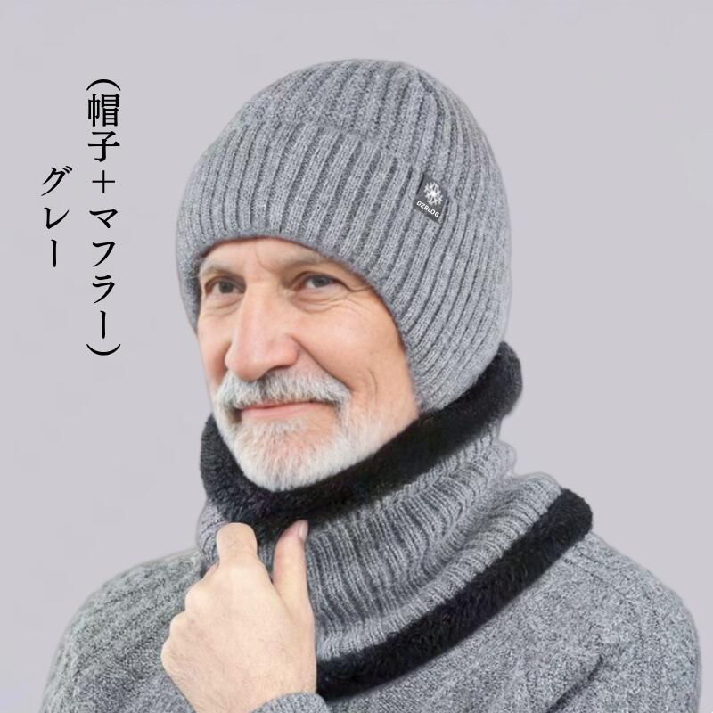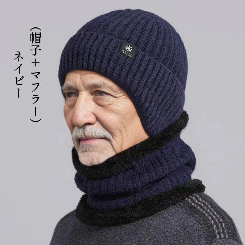 ニット帽 メンズ 耳あて ニットキャッ バッグ 小物 ブランド雑貨 特集 ブラック(帽子のみ) グレー(帽子のみ) ネイビー(帽子のみ) ブラック(帽子+マフラー) グレー(帽子+マフラー) ネイビー(帽子+マフラー)
