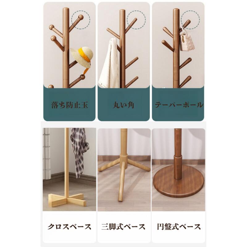 ハンガー ラック ポールハンガー コー 円盤式ベース8フック 円珠 三脚式ベース 8フック 円珠 円盤式ベース 8フック 水滴 三脚式ベース 8フック 水滴 円盤式ベース 8フック 木目色 ウォールナット色 アイボリーホワイト