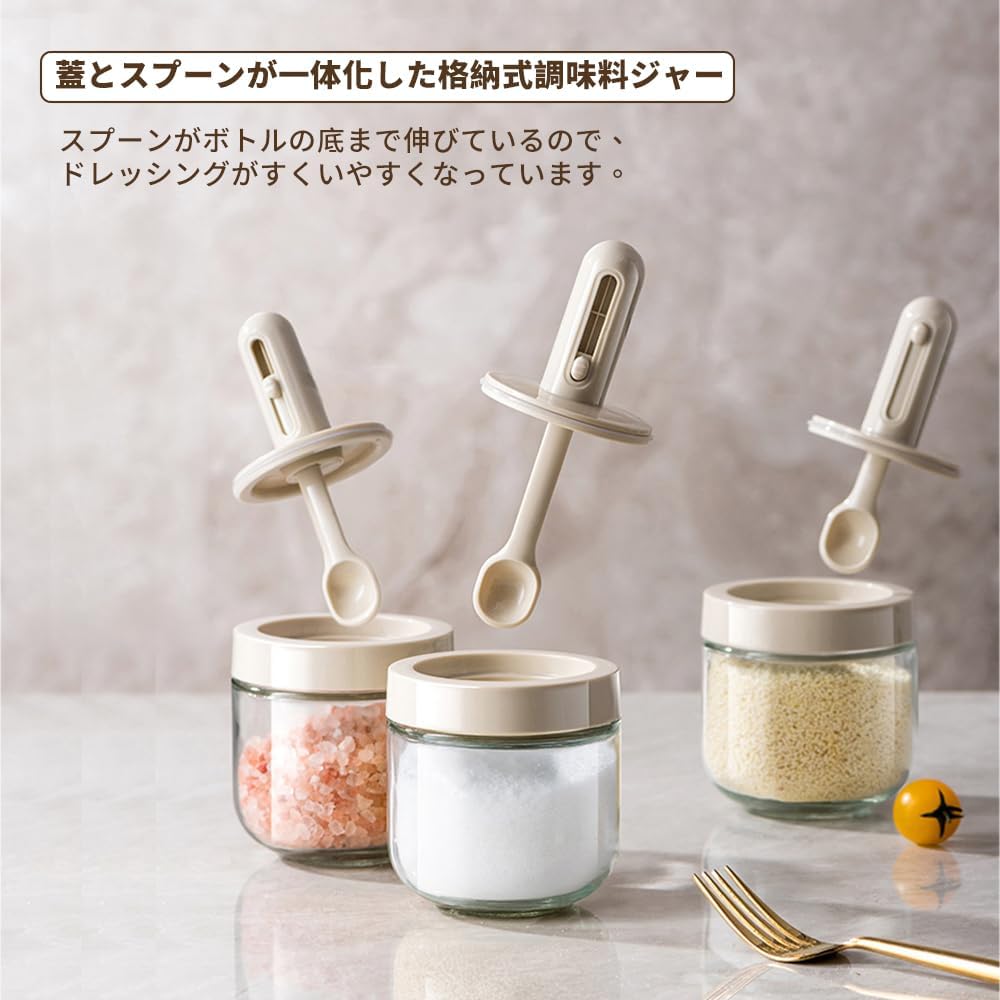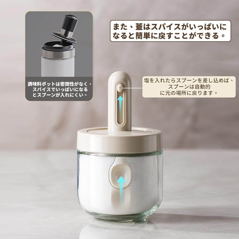 調味料入れ スプーン付き ベージュ グ キッチン用品 食器 調理器具 新作 アイボリー1個 アイボリー2個 アイボリー3個 グリーン1個 グリーン2個 グリーン3個