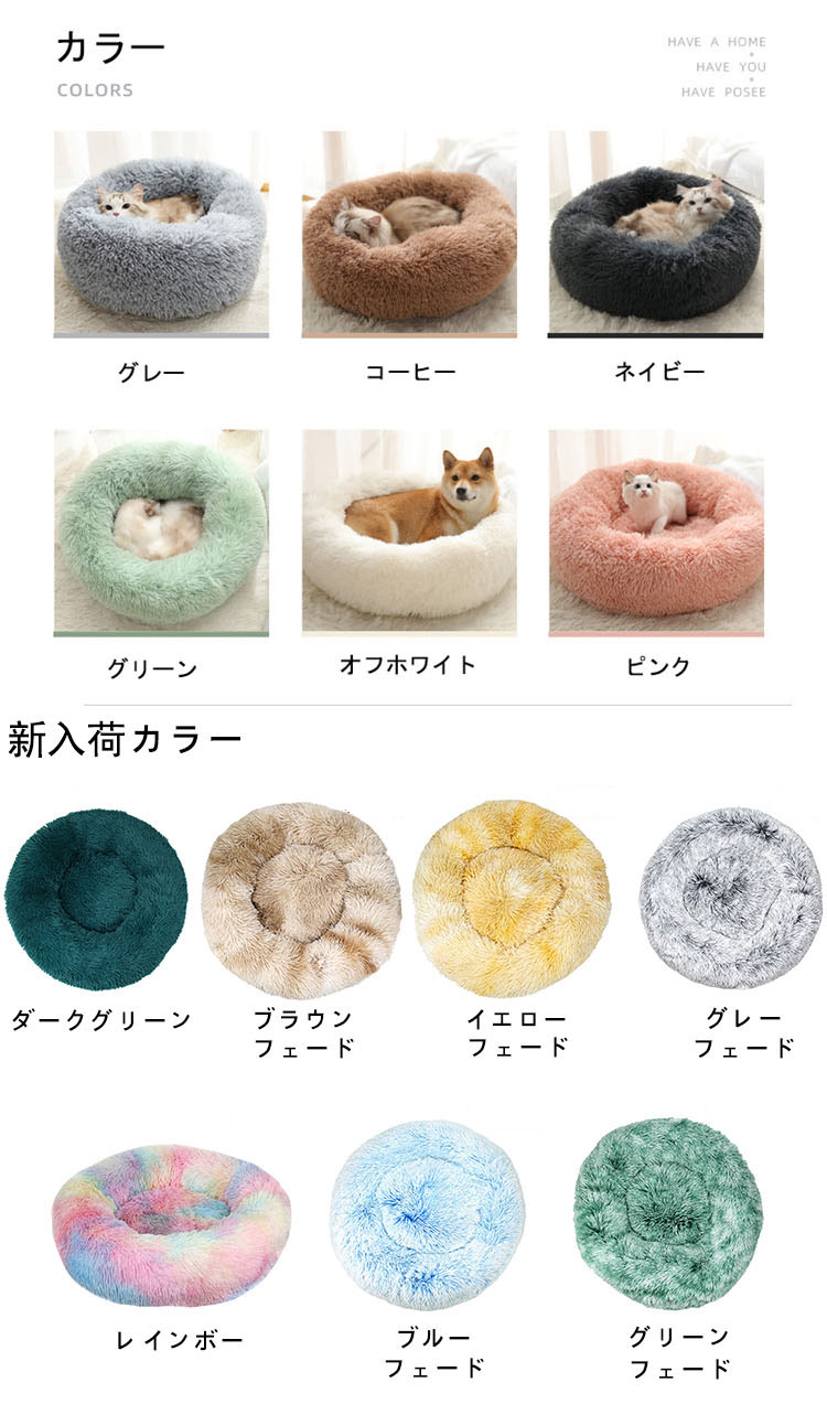 あったか 猫用ベッド 猫ベッド ベッド ペット ペットグッズ 人気 グレー コーヒー ネイビー グリーン オフホワイト ピンク ダークグリーン ブラウンフェード イエローフェード グレーフェード レインボー ブルーフェード グリーンフェード S M-50cm L-60cm LL-70cm 3L-80cm 4L-90cm 5-100cm