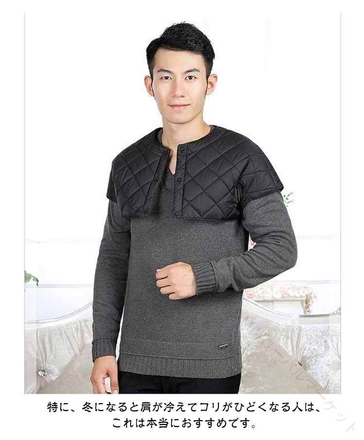 防寒具 肩当て メンズ ダウン 肩あて ブラック(丸首) ワインレッド(丸首) ネイビー(丸首) ブラック(襟付き) ワインレッド(襟付き) ネイビー(襟付き) M L XL 2XL