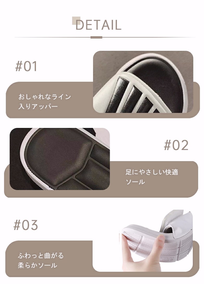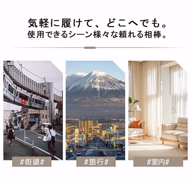 ※特別な滑り止め機能を施したソールではありません。 雨天時の濡れた道路や濡れた屋内の床など、歩行の際は滑らないよう十分気を付けて下さい。