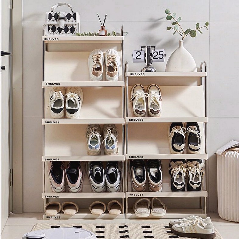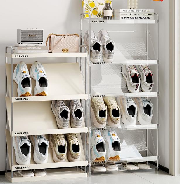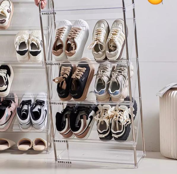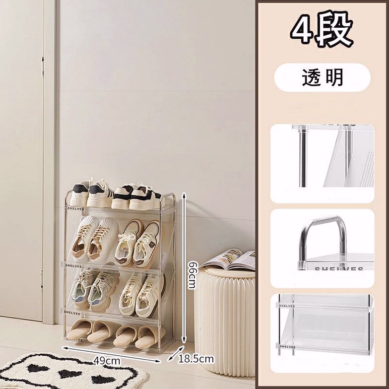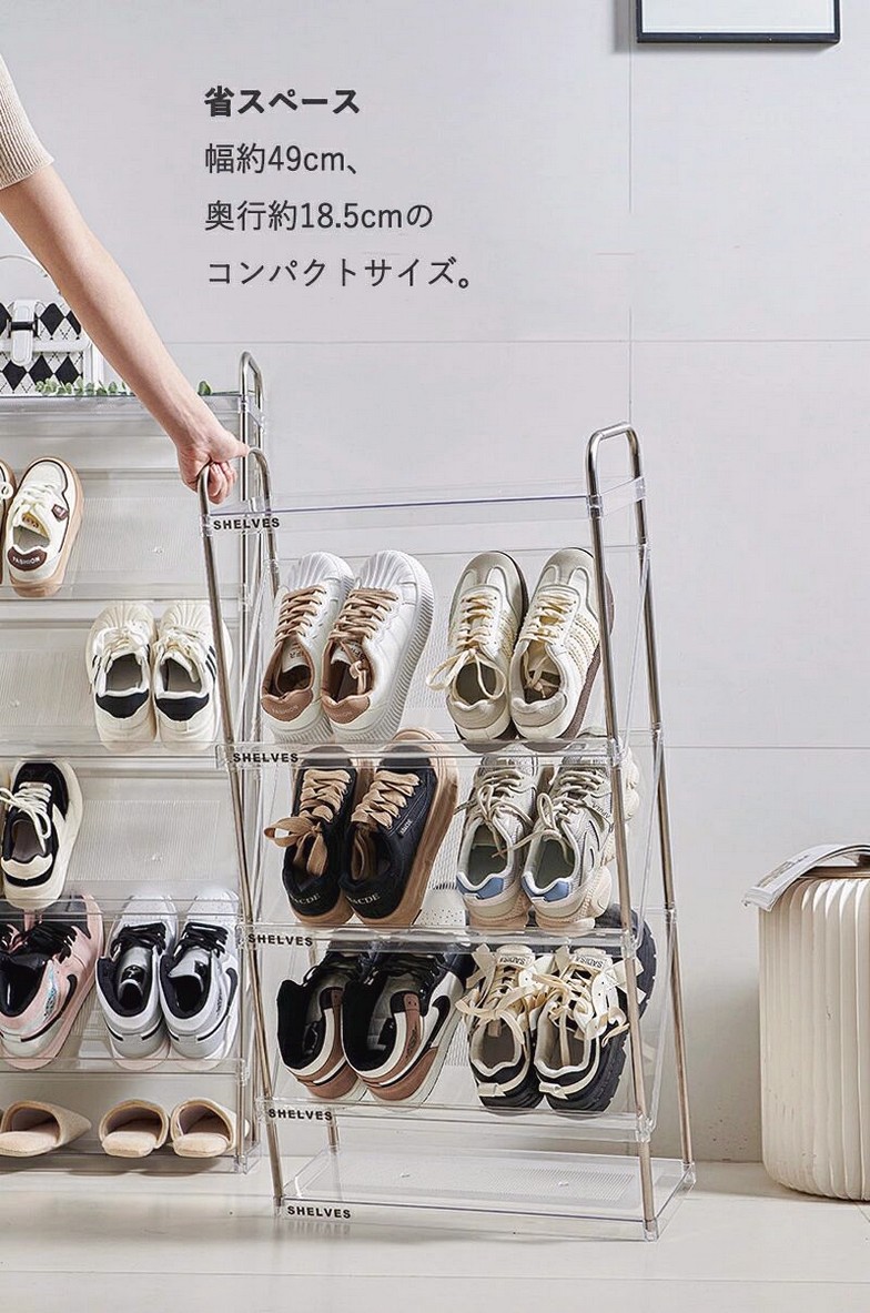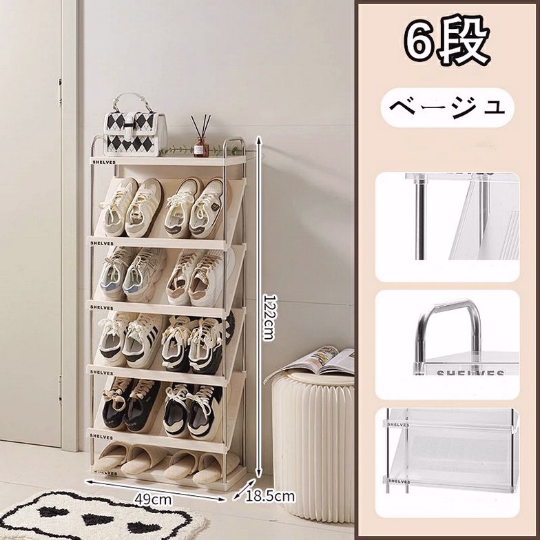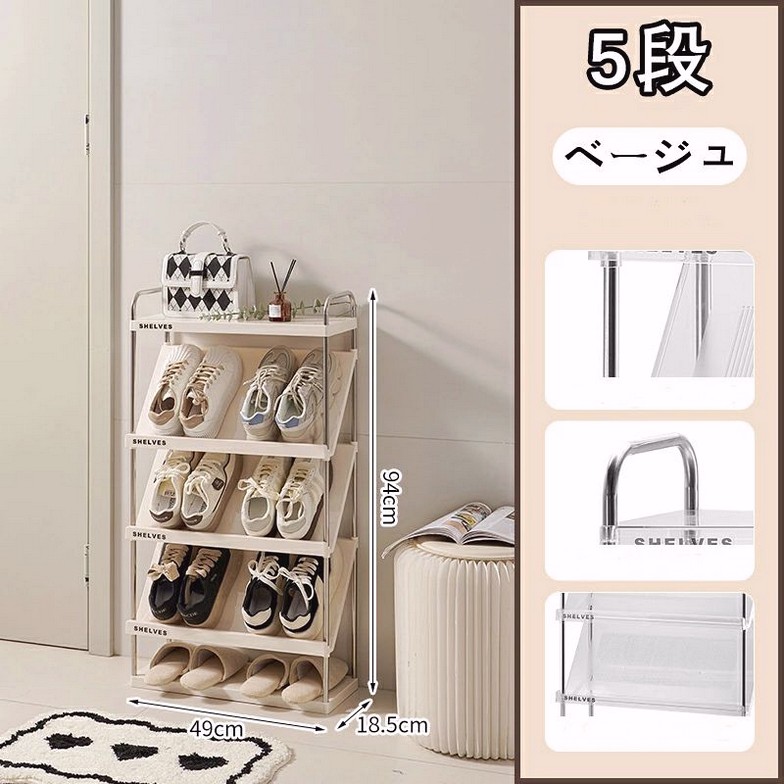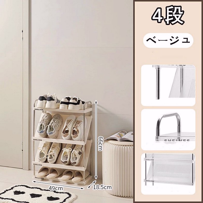 靴箱シューズラック 斜め 簡易 スリム ベージュ 透明 4段 5段 6段