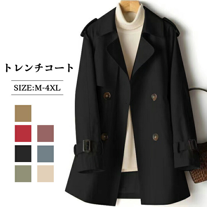 トレンチコート レディース ミドル a コート ジャケット 豊富 M L XL 2XL 3XL 4XL ベージュ ブラック カーキ グリーン ブルー(グレーっぽい) ピンク