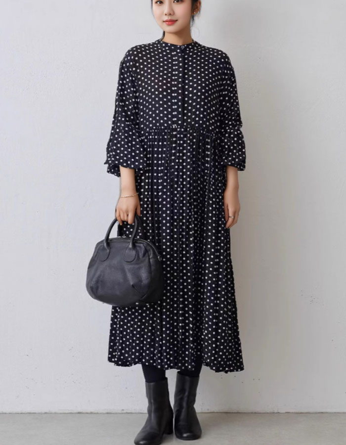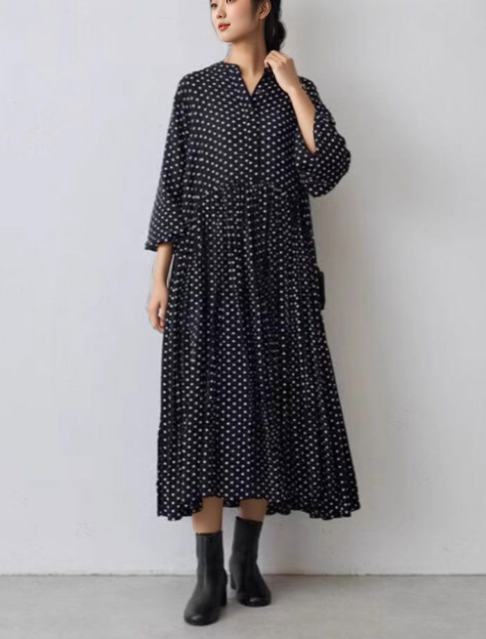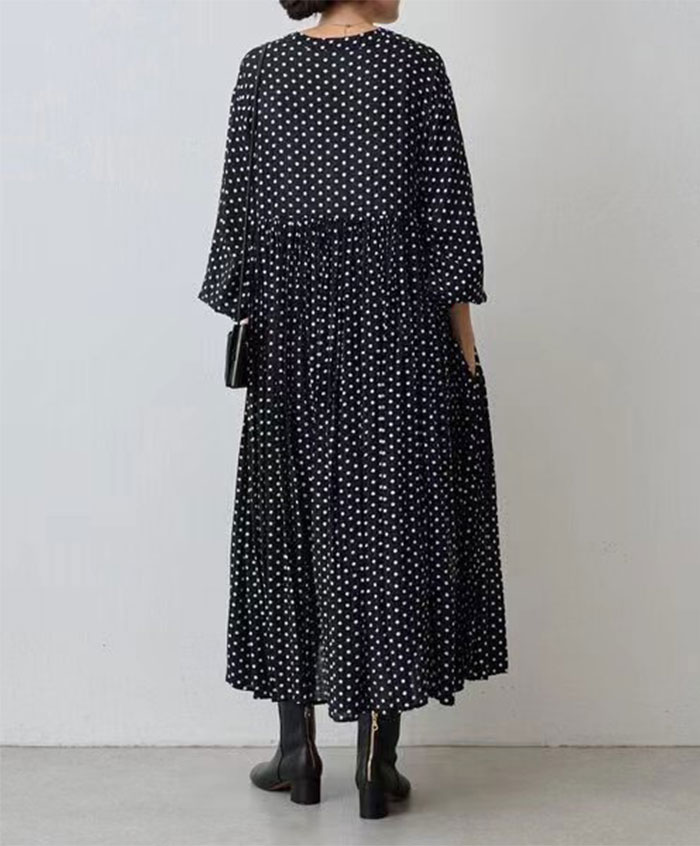 ロングワンピース 長袖 ドット柄 水玉 レディースファッション 新登場! S M L