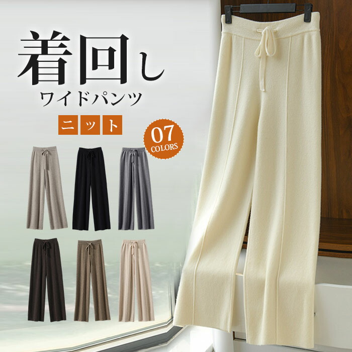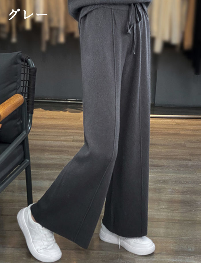 ワイドパンツ ニット リブニット 暖か レディースファッション 超目玉商品 グレー ベージュ ブラック カーキ オフホワイト ブラウン モカ S M L XL 2XL 3XL