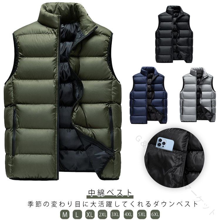 暖かく軽い 中綿ベストで快適な秋冬スタ メンズファッション 豊富な品揃え グレー ブラック グリーン ネイビー M L XL 2XL 3XL 4XL 5XL 6XL