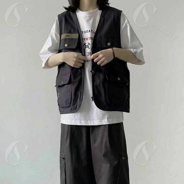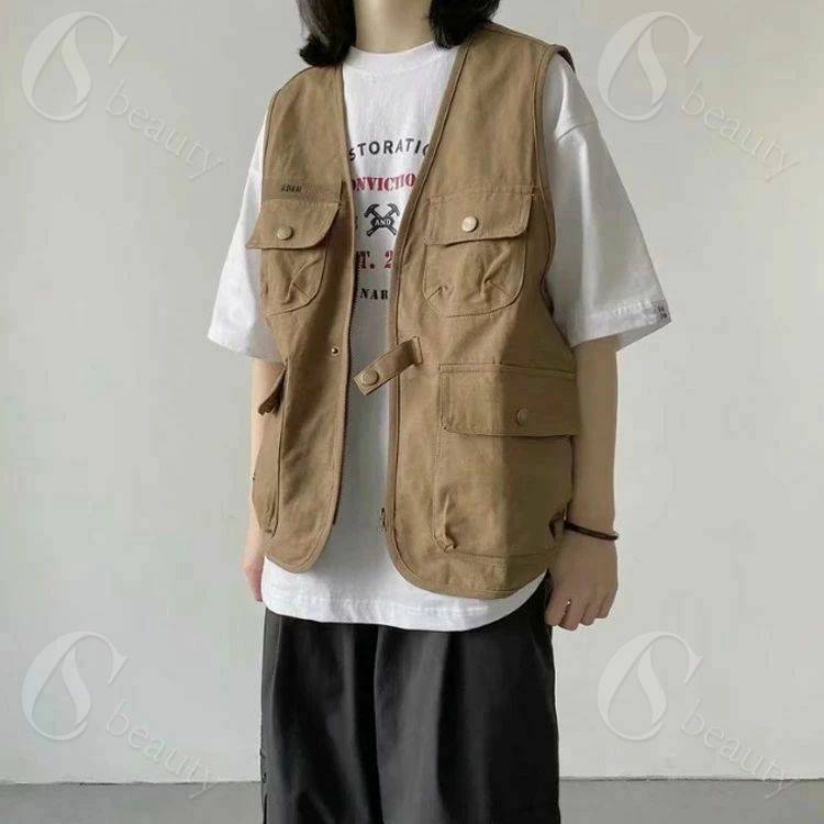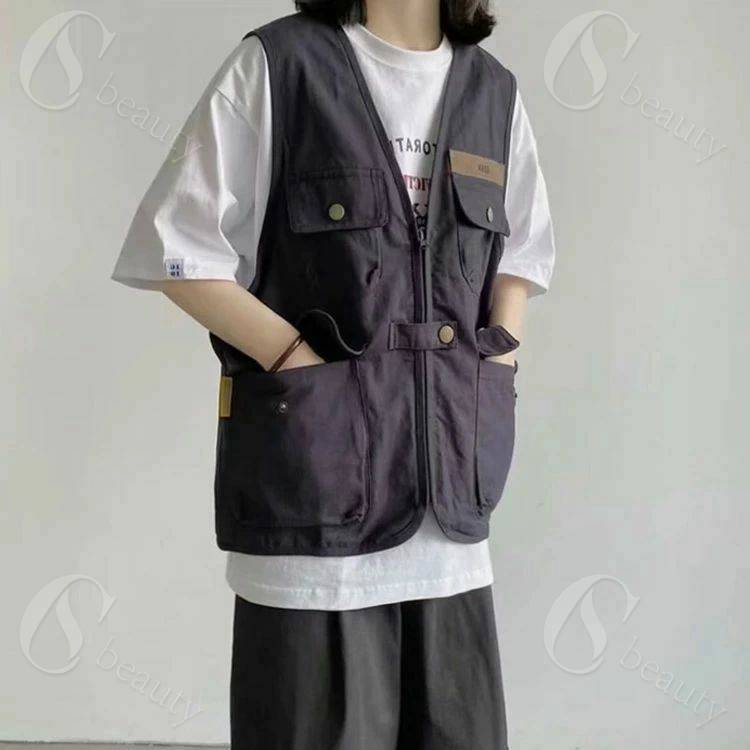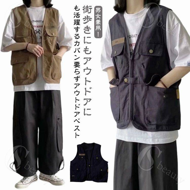 夏 レイヤード ポケット多数 多機能ベ レディースファッション 新登場! 黒 ブラウン 紺 M L XL 2XL 3XL