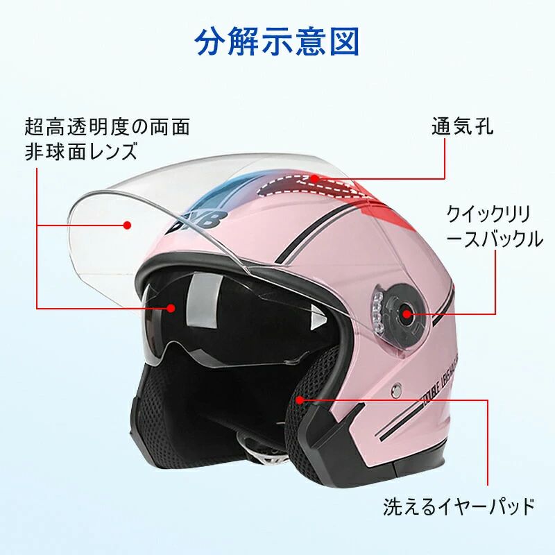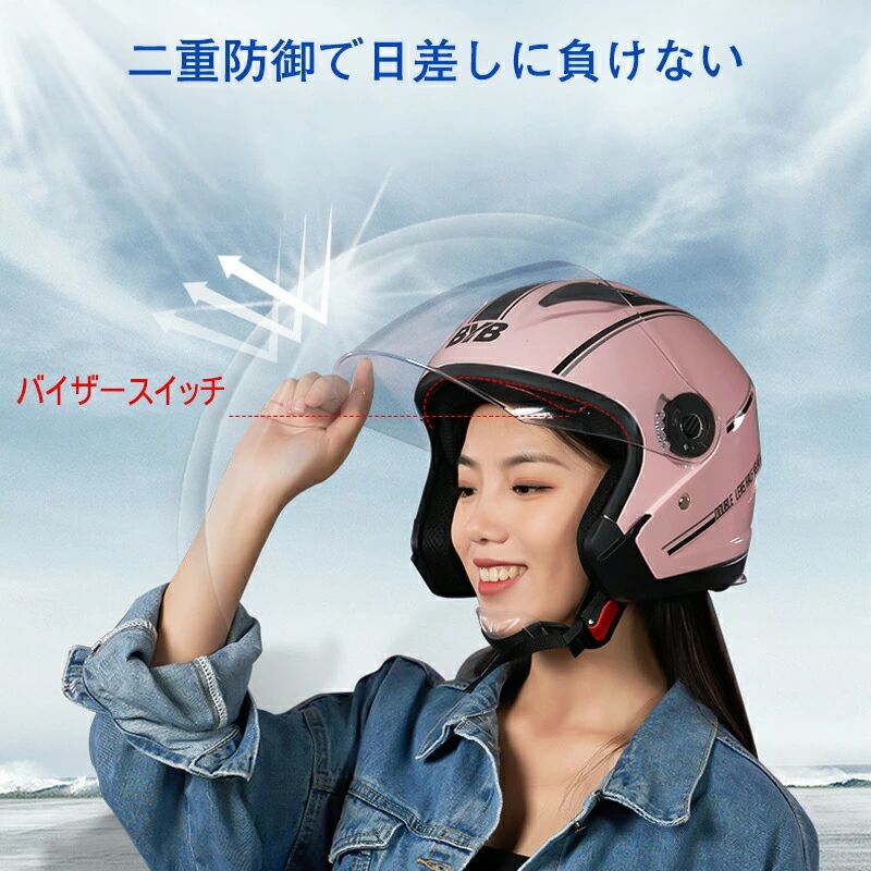 バイク用 ヘルメット バイク おしゃれ グレー ホワイト ブラック艶あり ブラック艶なし ピンク ブルー