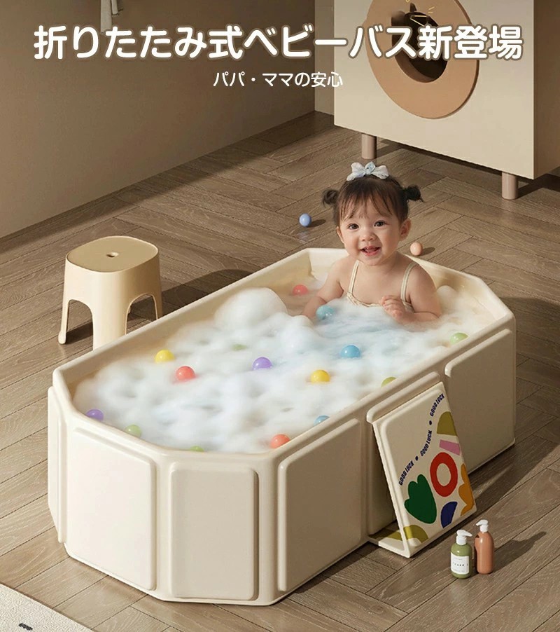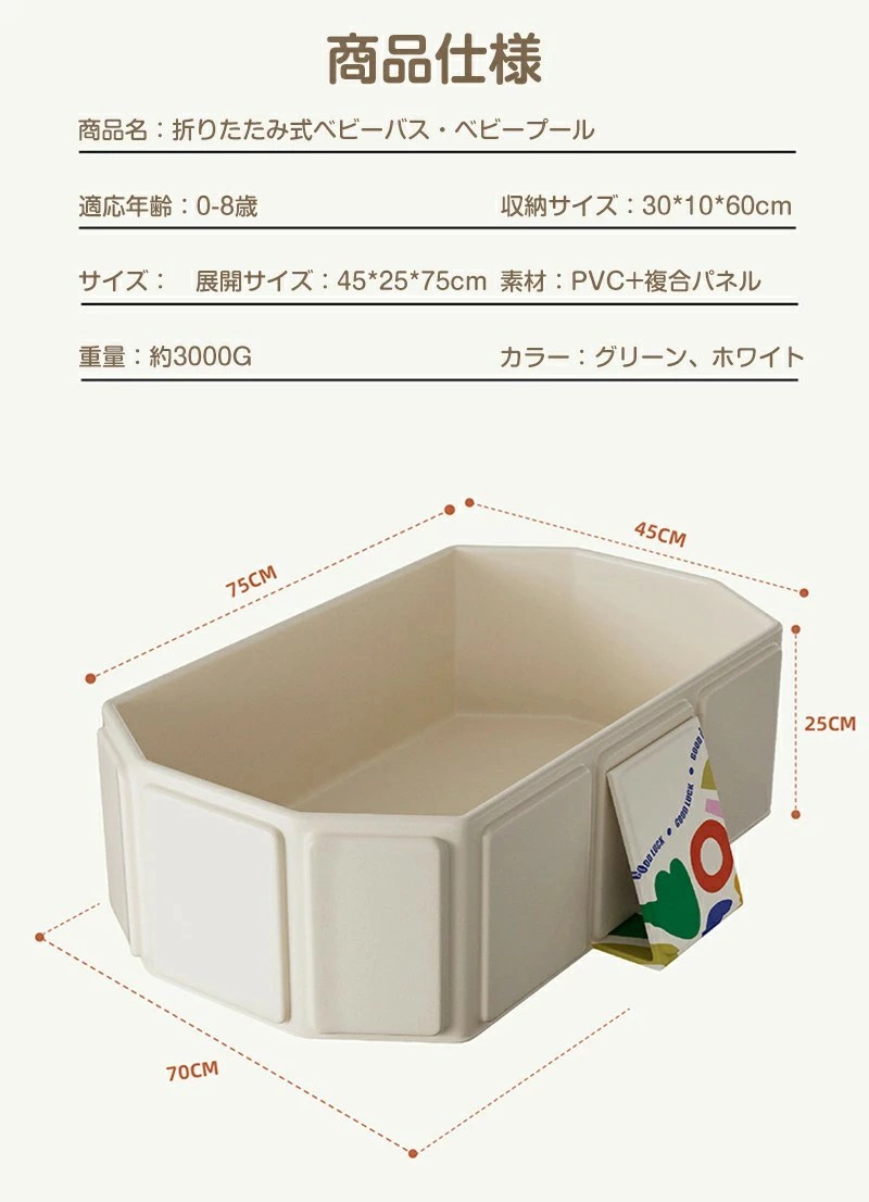 ベビーバス 折りたたみ 空気入れ不要 ベージュ グリーン