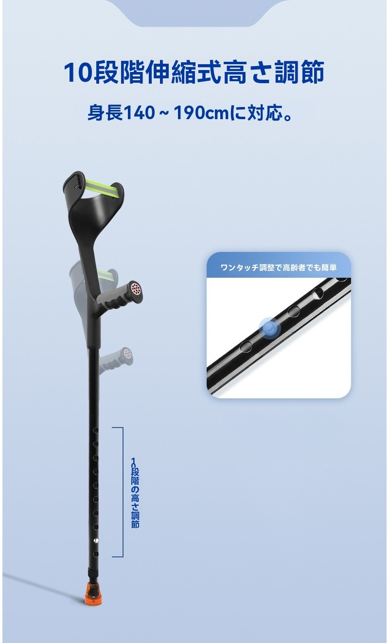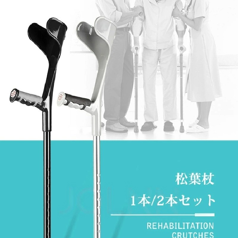 クラッチ杖 伸縮式 松葉杖 まつばづえ ブラック 1本 シルバー 1本 ブラック 2本 シルバー 2本