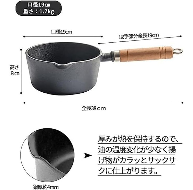 ミルクパン 鍋 鉄分 片手鍋 揚げ物 17cm鍋 19cm鍋 17cm+ガラス蓋+揚げネット 19cm+ガラス蓋+揚げネット