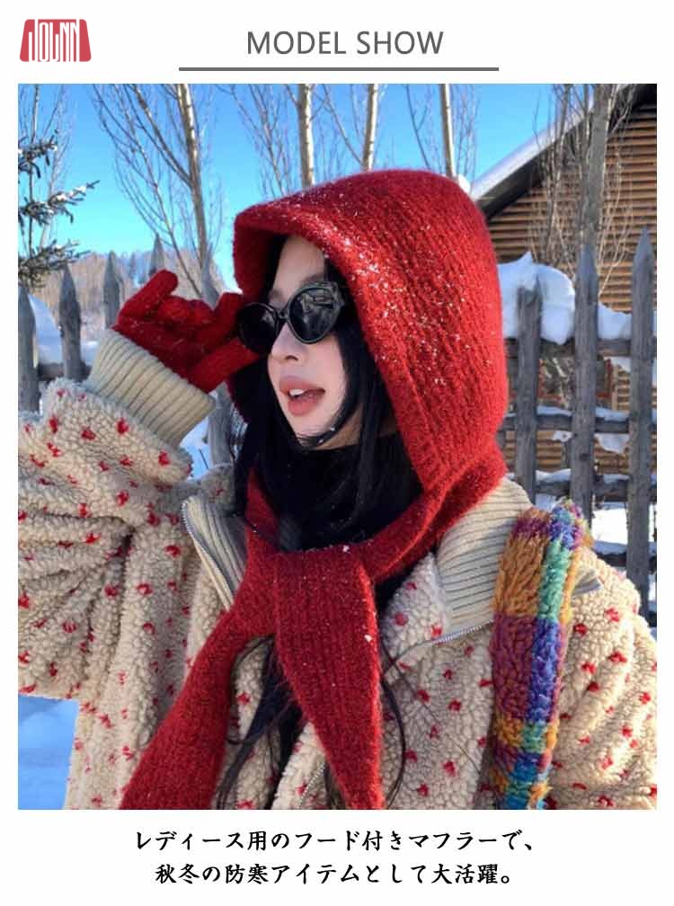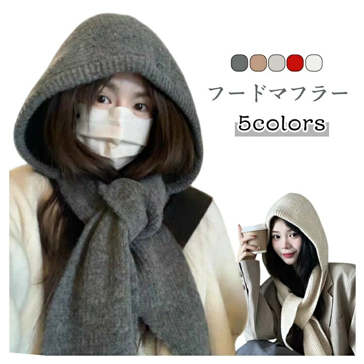 フード マフラー ニット フードマフラ バッグ 小物 ブランド雑貨 特集 グレー ベージュ キャメル ブラック レッド