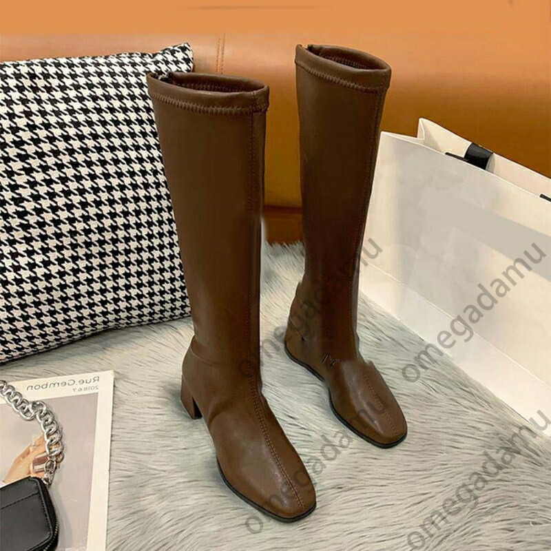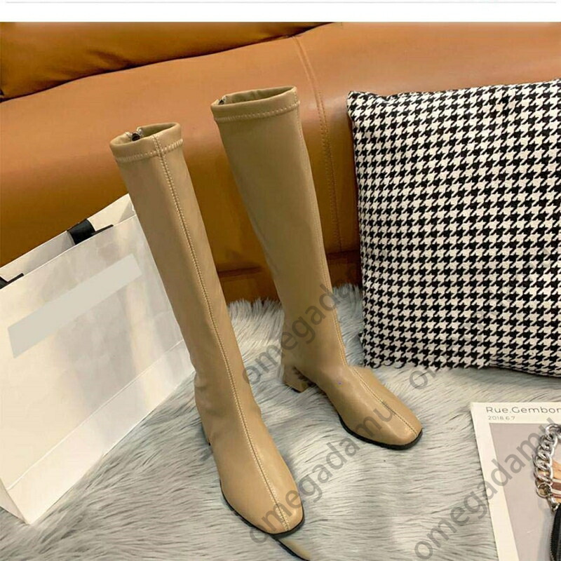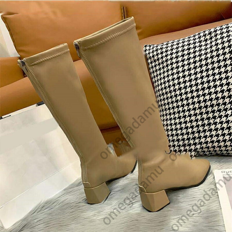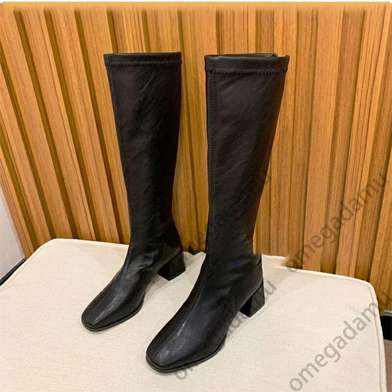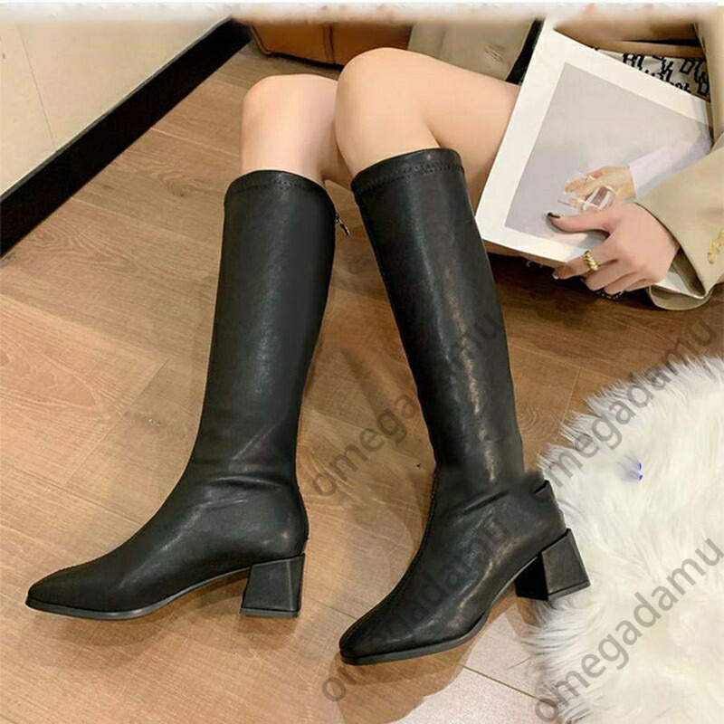 ロングブーツ レディース スクエアトゥ ロング丈 太めヒール ストレッチ 白ブーツ おしゃれ きれいめ PU 美脚 履きやすい 歩きやすい 黒 大人 秋冬 全4色 白