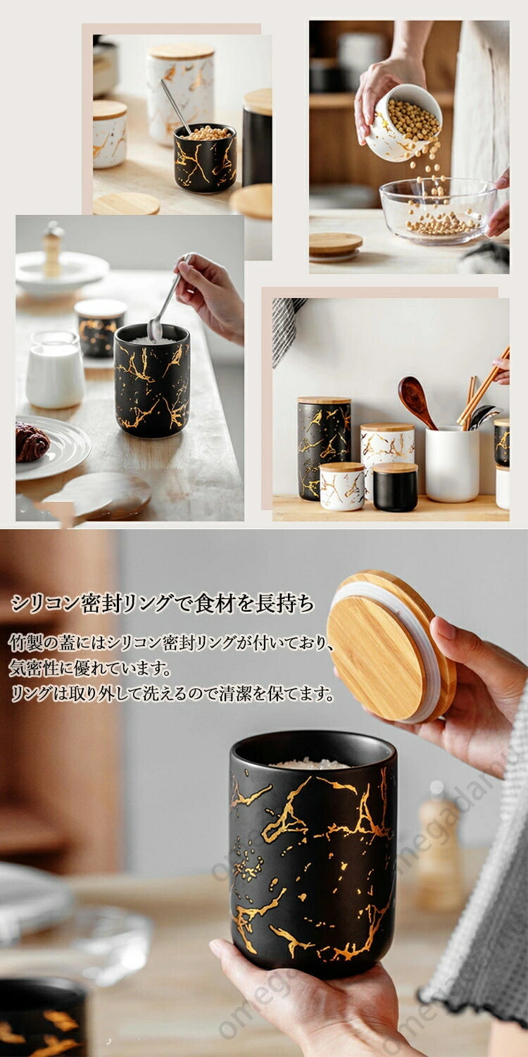 陶器 保存容器 密閉 キャニスター 木 保存容器 調味料入れ 保存容器 キャニスター 超目玉商品 黒 白 黒+金 白+金 【S・M・L】3個セット 【S】3個セット 【M】3個セット 【L】3個セット 【S】1個 【M】1個 【L】1個