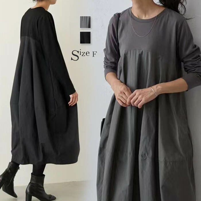 バルーン ワンピース レディース 秋 レディースファッション 続々登場 グレー ブラック