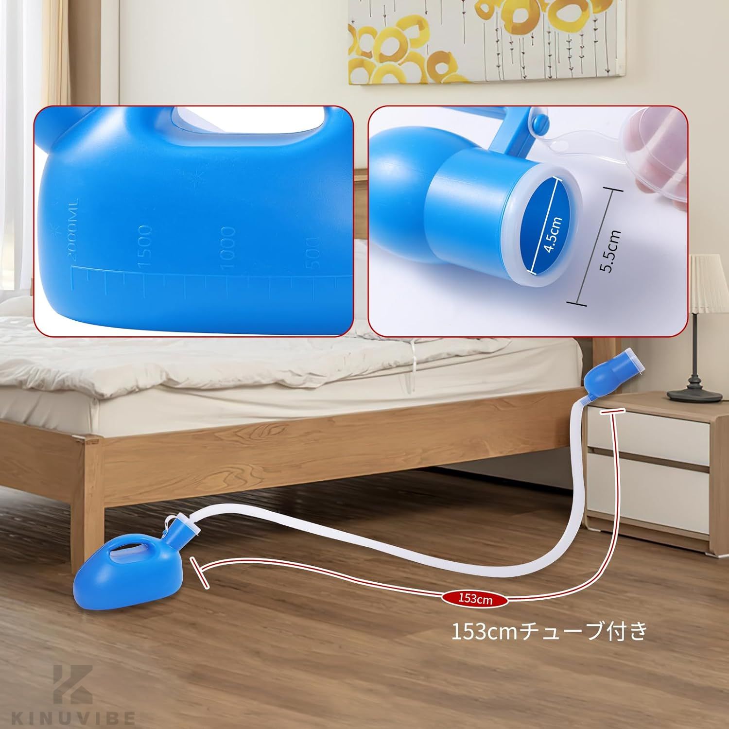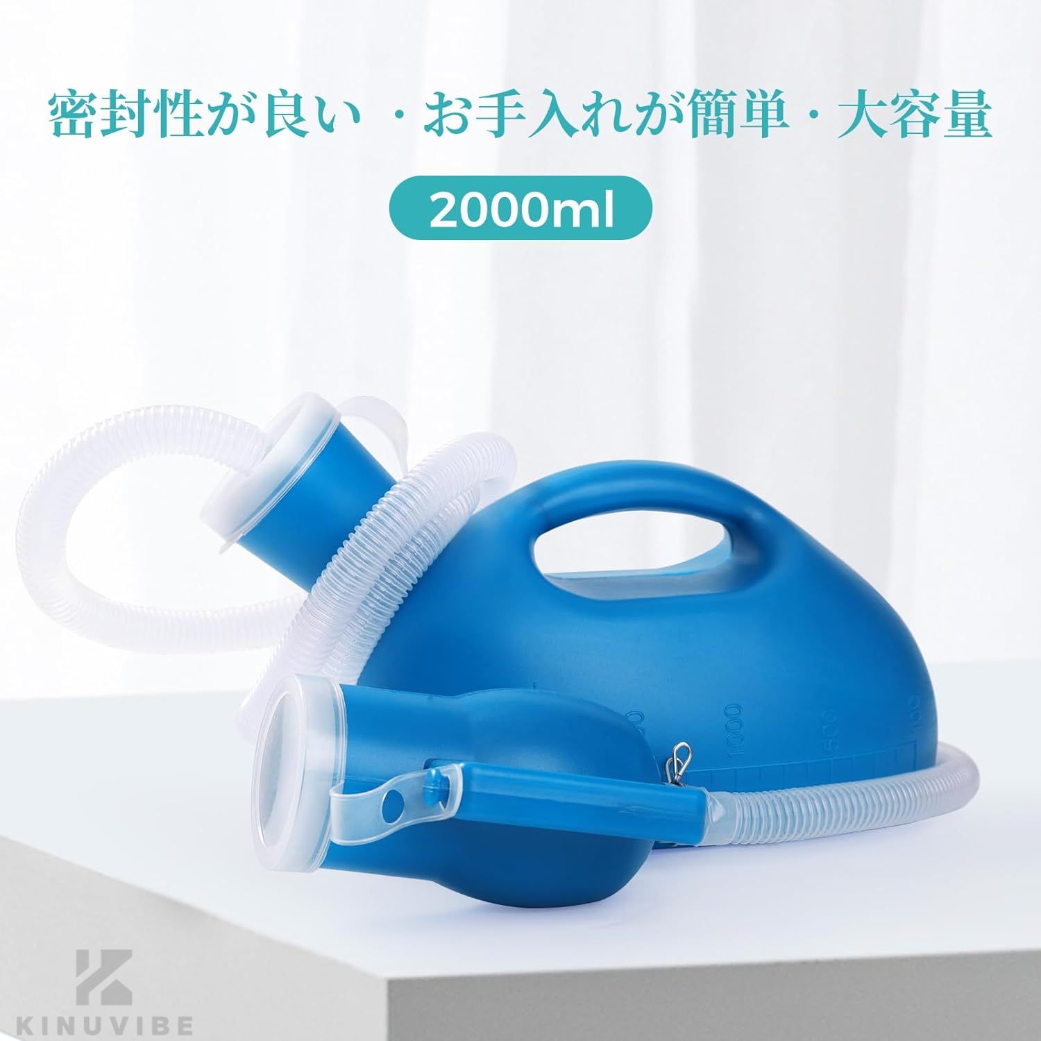 男性用尿器 大容量 2000ml 尿瓶 チューブ付き プラスチック こぼれないプレイマット 携帯トイレ用
