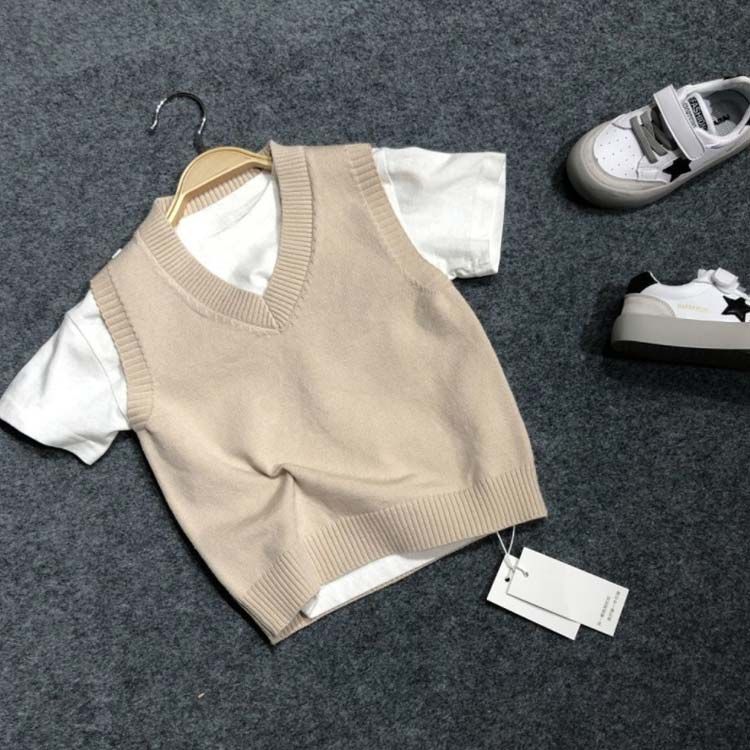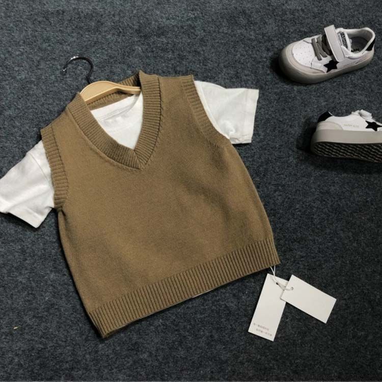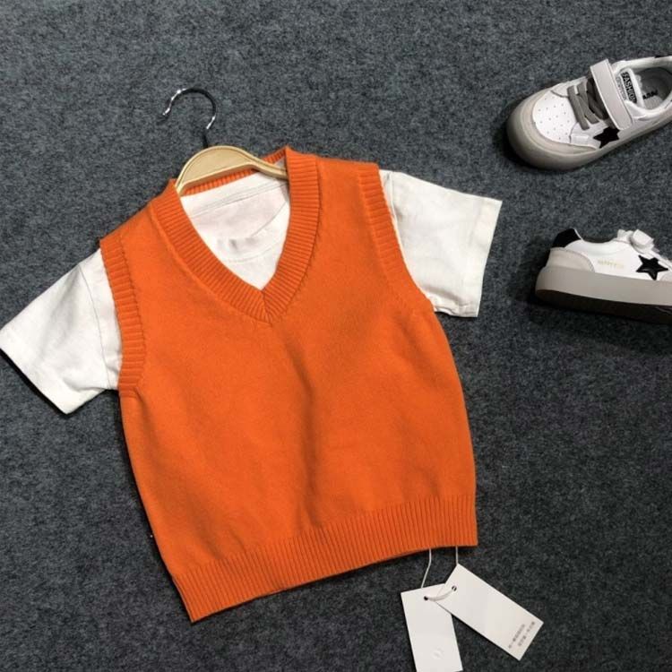 小学校 お受験 Vネックニットベスト キッズ ベビー マタニティ 新登場! オレンジ ブラック ブラウン ベージュ 80 90 100 110 120 130 140