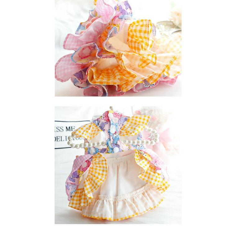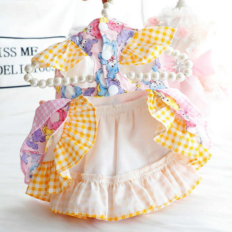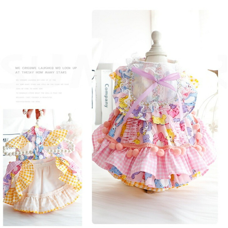 パーティードレス ピンク イエロー 犬 猫 小型犬 犬用 犬服 豪華 綺麗 高級 おしゃれ ドッグウェア 可愛い ペット服 夏 秋 冬 イベント お祝い 記念写真 ウェア 犬の服 かわいい ワンピース