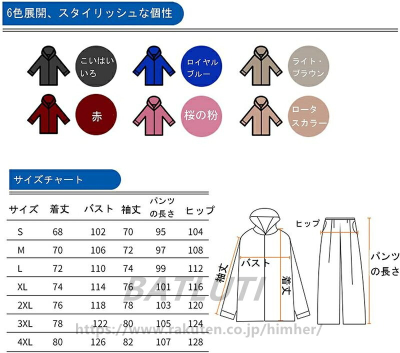 レインスーツ 上下セット レインポンチ スポーツ アウトドア 通販 紫 ライトブラウン レンコンピンク 赤 S M L XL XXL XXXL