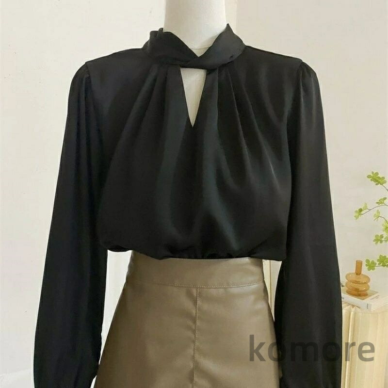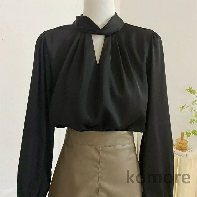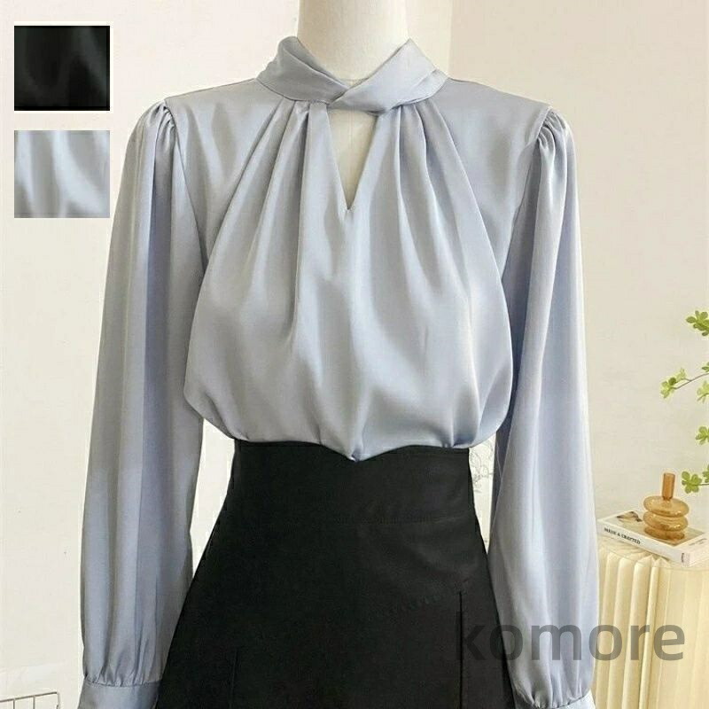 シャツ ブラウス スキッパーカラーブラ レディースファッション 続々登場 ブルー ブラック S M L XS
