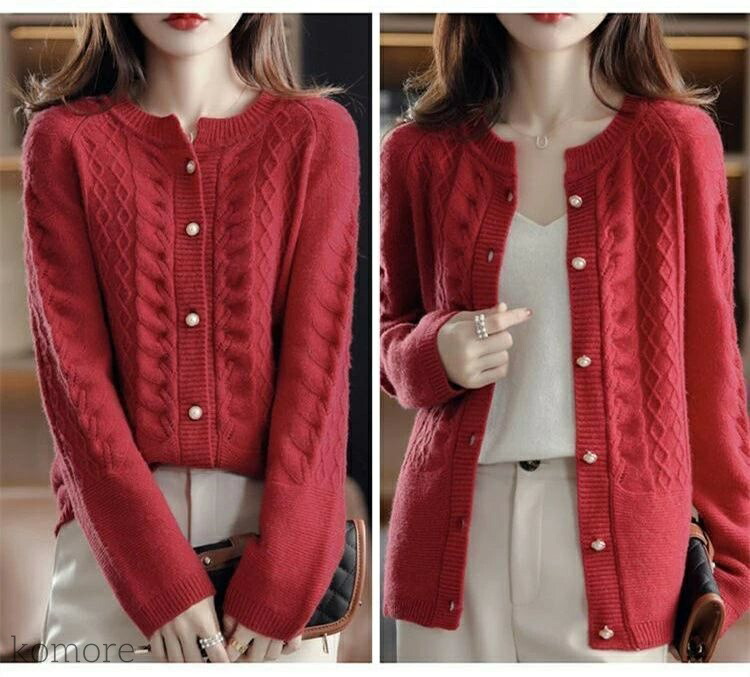 ニットカーディガン レディース秋冬 長 トップス ニット セーター セーター 豊富 グリーン レッド グレー ホワイト S M L XL 2XL