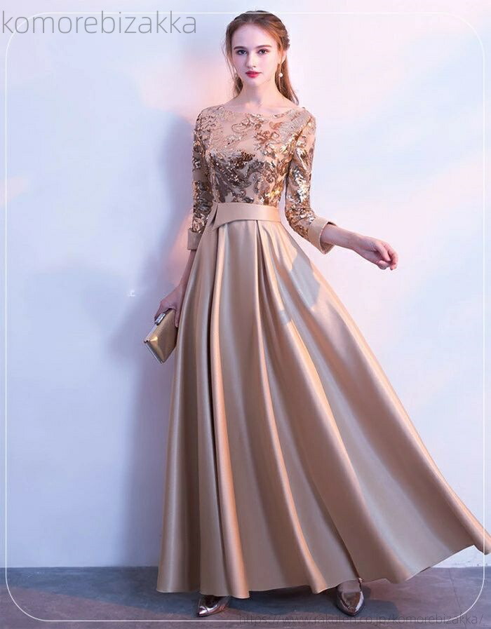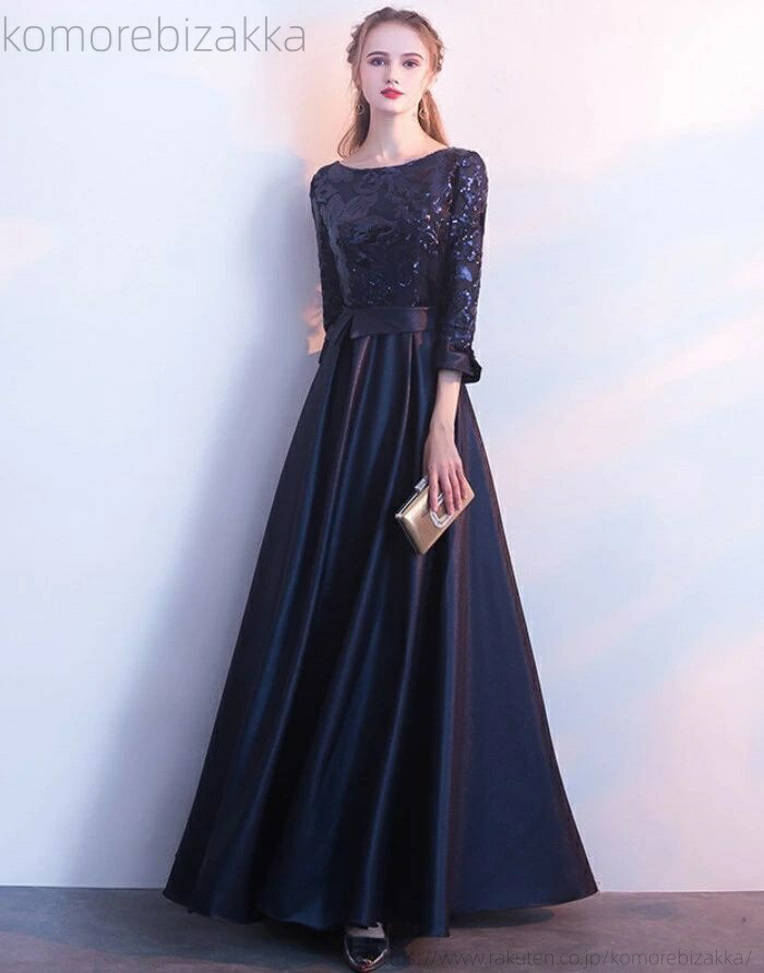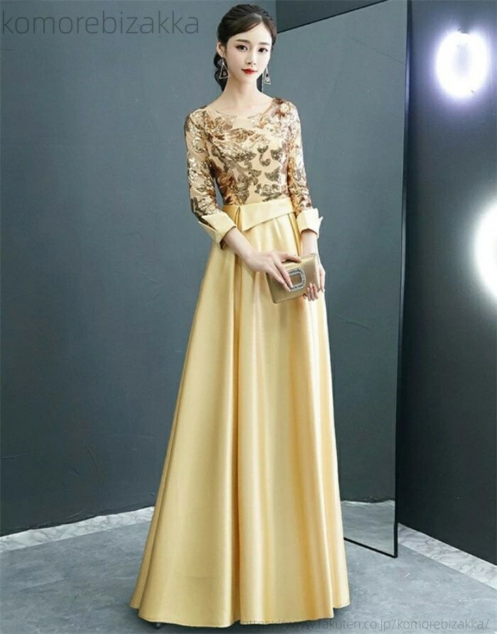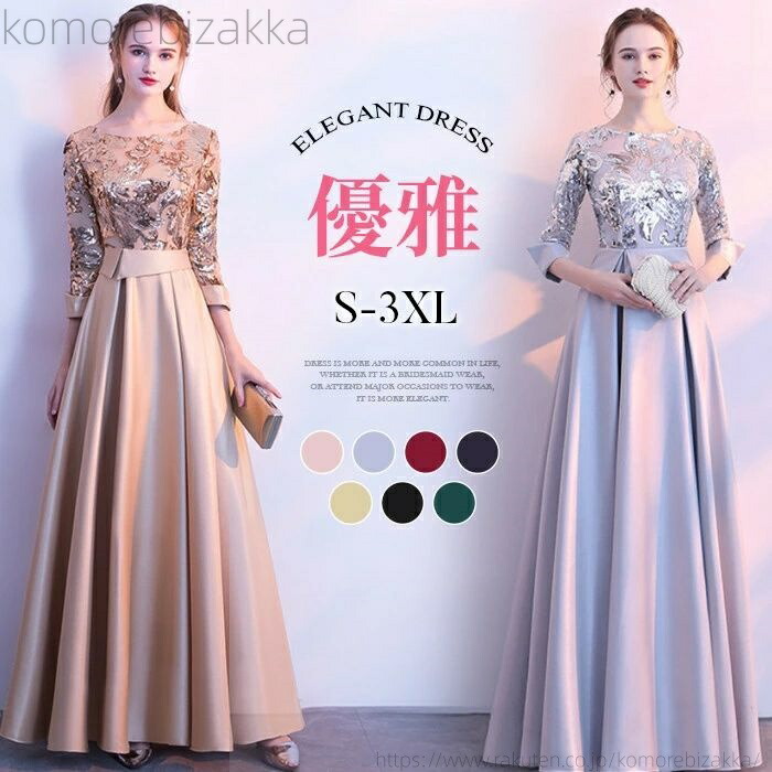 パーティードレス 演奏会 七分袖 フォ レディースファッション 続々登場 シャンパン ネイビー シルバー ワインレッド ゴールド 黒 グリーン S M L XL 2XL 3XL