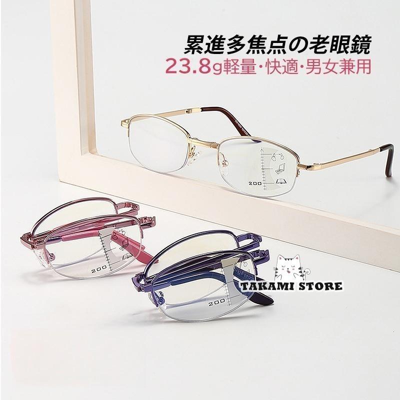 老眼鏡 自動にスマートズーム 遠近両用 バッグ 小物 ブランド雑貨 人気 ゴールド パープル ピンク