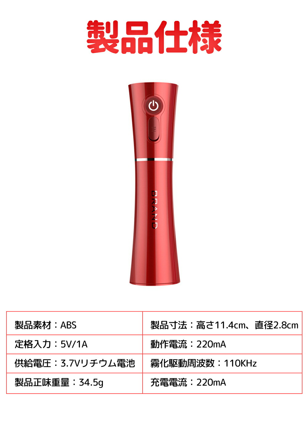 ハンディ加湿器 ハンディミスト美顔器 ホワイト レッド