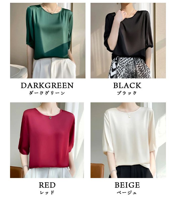 シルク シャツ 五分袖 ブラウス レデ レディースファッション 続々登場 レッド ピンク ホワイト ブラック ベージュ シャンパン ダークグリーン ライトグリーン M L XL 2XL 3XL 4XL