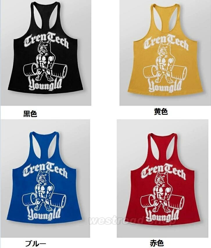 タンクトップ メンズ ノースリーブトッ トップス Tシャツ カットソー 人気 黒色 黄色 赤色 ブルー S M L XL 2XL