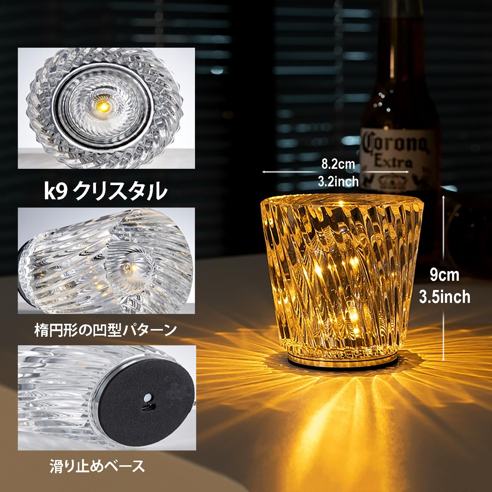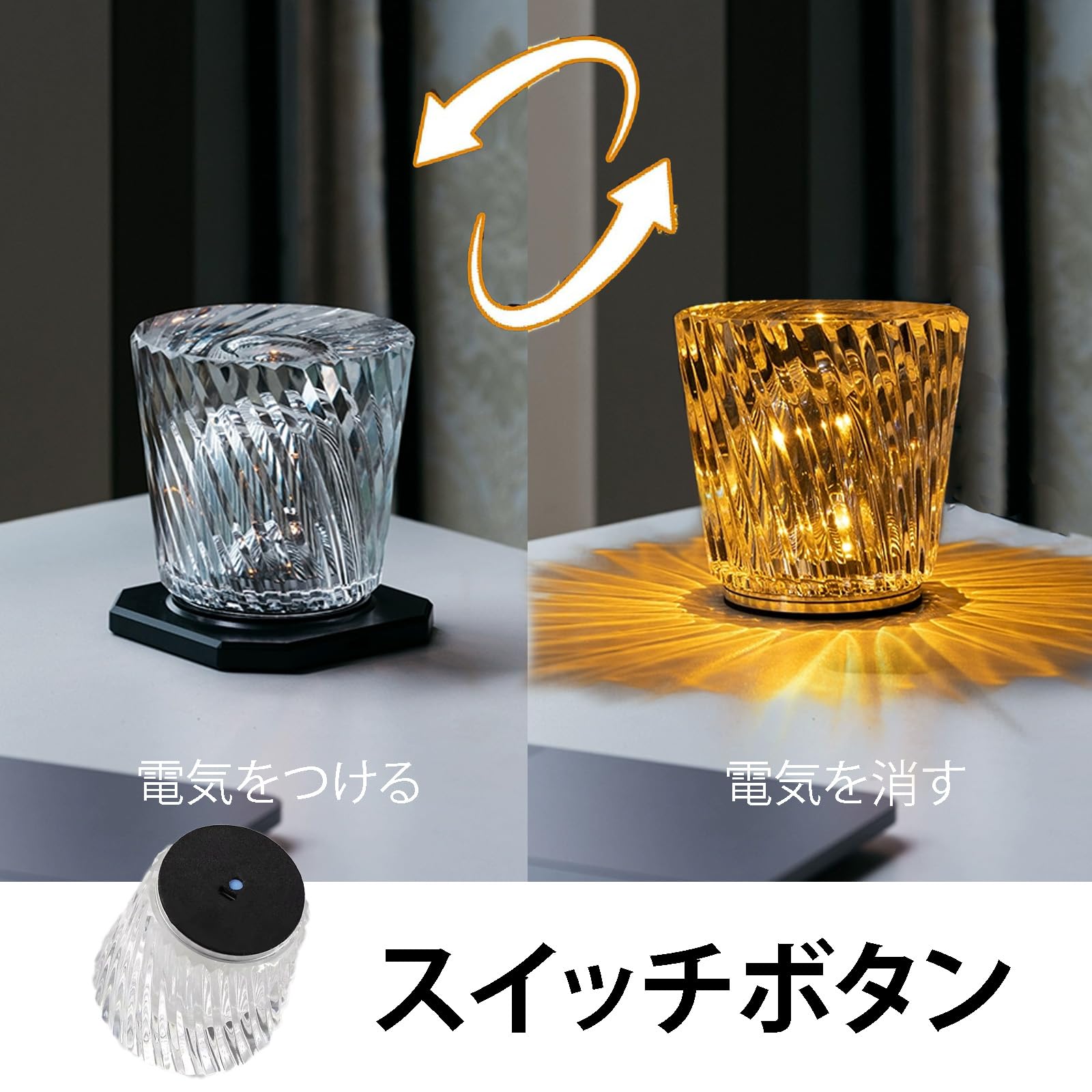 USB充電式クリスタルダイヤモンドテーブルランプ- 間接照明 インテリアUSB充電ケーブルが付属しており、使用時にプラグインする必要はありません。クリスタルテーブルランプは、完全に充電されてから20時間使用できます。ライトには高品質のLEDチップが使用されており、柔らかく暖かい光で、ちらつきはありません。