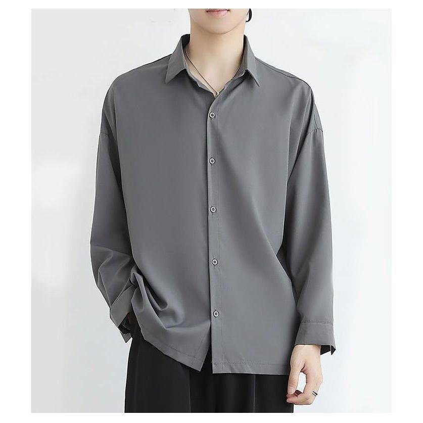 シャツ 接触冷感 メンズ 長袖 カジュアル 半袖 ビジネス 夏 アイスシルク 前開き 無地 白 グレー ホワイト ブラック 黒