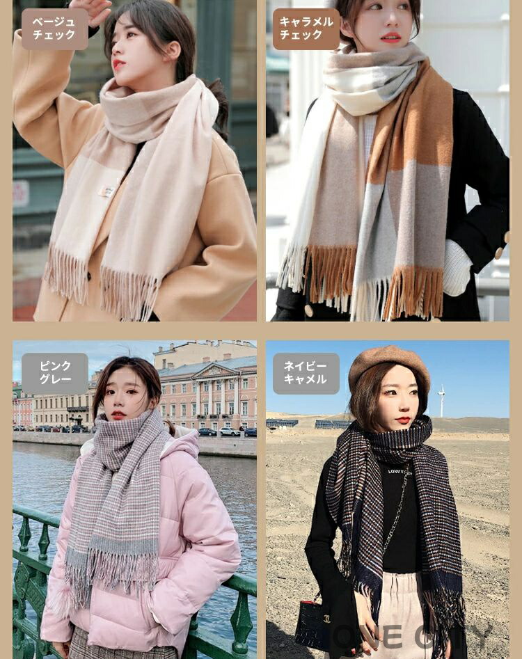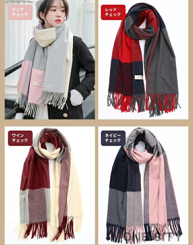 マフラー レディース チェック柄 大判 バッグ 小物 ブランド雑貨 人気 キャメルチェック ブルーチェック ベージュチェック キャラメルチェック ピンク×グレー ネイビー×キャメル ピンクチェック レッドチェック ワインチェック ネイビーチェック